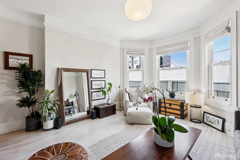 Light-filled top-floor Edwardian condo in a charming four-unit building in the heart of the Mission. Rare for the neighborhood, the property includes a massive assigned garage area with two-car parking and approximately 20 feet of storage for all your gear! Just steps from the trendy restaurants of the Valencia corridor with a Walk Score of 99, and easy access to downtown, freeways, transit, and tech shuttles. This bright home features beautiful garden views, updated windows, refinished original Douglas Fir floors, and a remodeled kitchen that opens to the dining area to enjoy meals al fresco. Full east to west exposure fills the space with natural light throughout the day. The flexible layout offers two bedrooms and either a room for a home office or guest space. In-unit laundry, and a convenient split bathroom, feature a room with shower and sink as well as a room with toilet and sink. Shared garden area has a mature fruit-bearing avocado tree, heat lamp, cushioned entertaining area and BBQ grill. This central location is the perfect place to call home!
