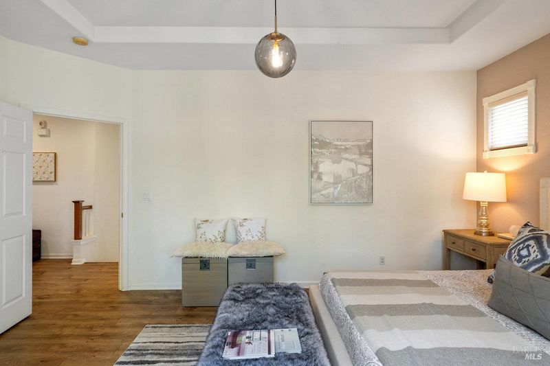 Explore the charm of this wonderful Hamilton home, spanning appx 2,283 square feet, this spacious 4-BR/2.5 BA residence offers a comfortable retreat for discerning buyers. As you step inside, you're greeted by the inviting living/dining room adorned w/soaring ceilings and large windows that flood the space w/natural light. An open-concept layout seamlessly blends the family, dining, and kitchen areas. The kitchen, equipped with modern appliances & ample storage, caters to culinary enthusiasts. Sliders off the kitchen access the lovely backyard with grass and patio pavers allowing for fabulous indoor-outdoor flow to enjoy Marin's fine Mediterranean climate. The upper level is anchored by a serene primary suite, offering 2 walk-in closets and ensuite bath w/tub & stall shower. 3 add'l BR and a full BA which ensure space for everyone or work-from-home needs & conveniently located laundry room. Nestled in the Hamilton Neighborhood, this home provides easy access to schools, parks, shopping & amenities, embodying the quintessential CA living experience. Hiking and walking bay trails just out your door at the end of the quiet cul-de-sac. Easy access to 101 for a 18-mile SF commute or wine country get-aways. Experience the warmth and convenience of this lovely home.