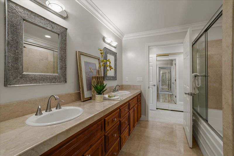 - Stall Shower, Tub with Jets, Half on Ground Floor, Showers over Tubs - 2+, Primary - Sunken Tub