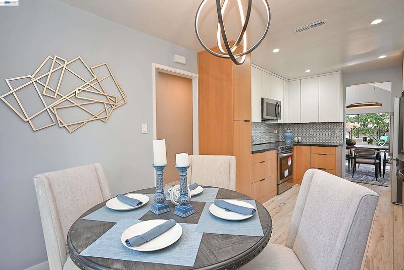 Located in the heart of Pleasanton, this beautifully updated 2-bedroom, 1-bath townhouse offers style and convenience just minutes from Stoneridge Shopping Center, BART, and major freeways. Open-concept layout with a striking accent wall, tile fireplace, and oversized patio doors leading to a private patio with new concrete and turf ideal for indoor-outdoor living. Upgraded kitchen features stainless steel appliances, dual-tone Scandinavian cabinetry extending into the nook, and custom tile finishes. Both bedrooms include accent walls. Jack-and-Jill bathroom offers designer tile throughout, Scandinavian oak cabinetry, updated plumbing fixtures, and dual vanity for the primary suite. Additional features include waterproof laminate flooring, fresh interior paint, and updated lighting. HOA amenities include pool, tennis/pickleball courts, and clubhouse.