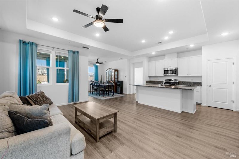 Short Sale Opportunity at Four Seaons 55+ gated community! Move-in ready home with an oasis backyard, owned solar, no back neighbors, and located just steps from the Clubhouse. The popular Rincon floorplan features a 10x10 bedroom in the front, an 11x10 bedroom or home office in the middle, and an elegant owner's suite tucked into the back corner, complemented by coffered ceilings and a resort-like bath with a walk-in shower, bench, and huge walk-in closet. This open floor-plan home shines with LVP flooring, recessed lighting, and ceiling fans throughout. The Craftsman elevation offers a cozy front porch, perfect for enjoying warm weather or a morning cup of coffee. The Four Seasons community provides access to a state-of-the-art clubhouse, fitness center, pools, yoga deck, outdoor kitchens, pickleball courts, dog parks, walking trails, and more. Conveniently located near I-80 access and less than 12 miles from Kaiser hospital, Nut Tree Outlets, & Costco!