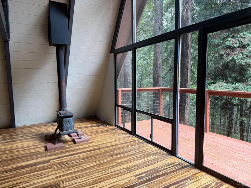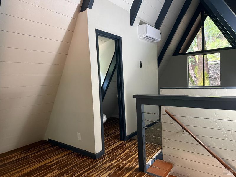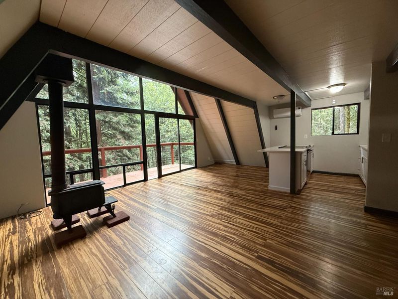 Tucked into the woods on a large parcel with greenbelt surroundings, this inviting A-frame offers privacy, warmth, and stunning views of the forest. Inside, a wall of windows creates a serene, treehouse ambiance. The back deck offers a quiet spot to unwind and enjoy the setting. The one-bedroom, 1.5-bath layout includes a loft, as well as a private bonus room with its own entrance and deck - ideal for guests, a studio, or home office. Recent updates include new carpet, refreshed kitchen finishes, new mini-split heating and cooling systems, and thoughtful upgrades throughout. This move-in ready getaway combines modern comfort with timeless cabin charm, your perfect escape in the heart of Brooktrails.