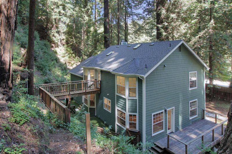 Nestled on 3~ private acres surrounded by stunning redwoods, this Cape Cod-style home combines classic charm with modern upgrades. Offering 4 spacious bedrooms, including 2 luxurious ensuite bedrooms, and 3.5 fully updated bathrooms, this home provides plenty of comfort for family and guests. Enjoy the warmth of gleaming hardwood floors throughout the living spaces and take advantage of your own private trail system, perfect for outdoor adventures right in your backyard. The property includes a 2-car garage and two additional carports, ensuring ample parking for vehicles and guests. Located with easy access to Silicon Valley and Stanford University, this serene property offers the best of both worlds, tranquil living with proximity to all major amenities. Experience the ideal blend of privacy, comfort, and convenience in this unique redwood retreat!