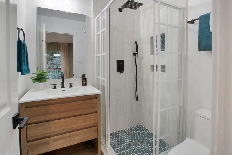 - Half on Ground Floor, Primary - Oversized Tub, Primary - Stall Shower(s), Shower over Tub - 1, Stall Shower - 2+, Updated Bath