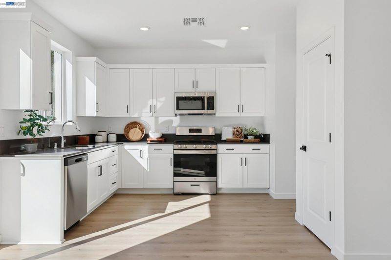 - Dishwasher, Gas Range, Microwave, Tankless Water Heater, Counter - Solid Surface, Gas Range/Cooktop