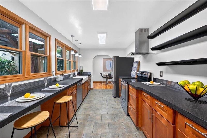 - 220 Volt Outlet, Countertop - Granite, Exhaust Fan, Garbage Disposal, Hood Over Range, Oven Range
