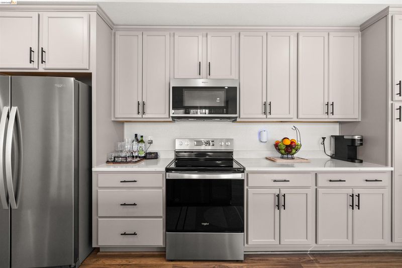 Dishwasher, Electric Range, Microwave, Free-Standing Range, Refrigerator, Dryer, Washer, Electric Water Heater, Breakfast Bar, Stone Counters, Electric Range/Cooktop, Disposal, Kitchen Island, Range/Oven Free Standing