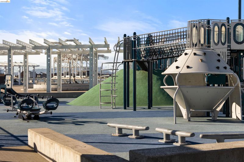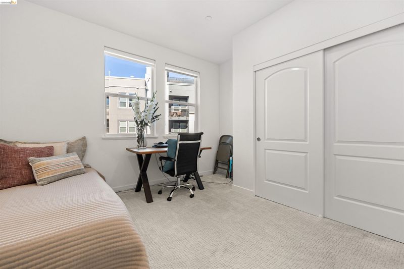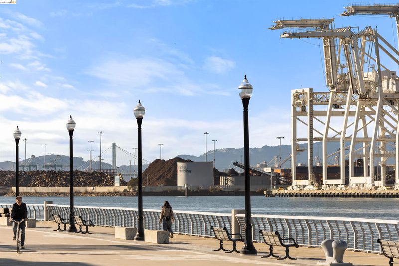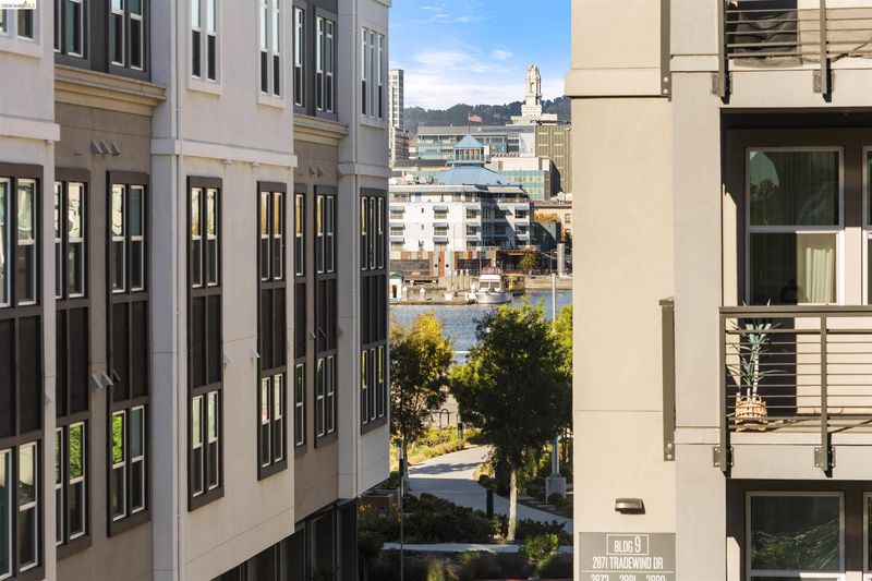 Welcome to this stunning, nearly new, contemporary corner condo in Alameda’s Bay 37 waterfront community, completed in 2023. This two-bedroom, two-bath home features a roomy, open-concept layout, perfect for modern living. The heart of the home is a shining kitchen with a central island, flowing seamlessly into the living room, which is bathed in natural light from sweeping windows. Enjoy a captivating "peek-a-boo" view of Oakland’s Inner Harbor and the distant top of City Hall while dining. For truly panoramic vistas, including the Bay Bridge and downtown San Francisco, residents can enjoy the shared rooftop deck. The home includes many modern conveniences: in-unit laundry, a dedicated garage with EV charging capabilities, and an owned solar system. Bay 37 offers residents an array of amenities, including waterfront walking paths, picnic areas, a park and playground, and a community dock. Commuting is effortless with a complimentary water taxi service to Jack London Square and a free shuttle to 12th St. Bart Station, providing easy access to SF via ferry or Bart. Plus, neighborhood essentials like Target and Safeway, along with diverse dining options, are all within a half-mile radius!