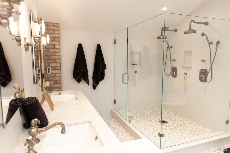 - Double Sinks, Multiple Shower Heads, Soaking Tub