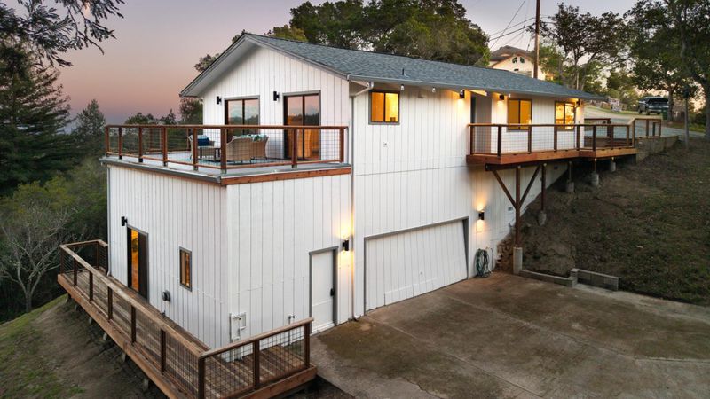 Welcome to one familiy's dream well lived, and now your opportunity! This sunny, quiet retreat on 12+ acres has vast valley views, and shimmering Bay Views in the background. Numerous trails, level areas, and Redwood Groves are all a part of this magnificent site. A warm, friendly design enjoys; 3 bedrooms and 2 baths all on the main level. In the LR and Kitchen, you have open beam ceilings that expand the feel of the views around all sides. The new decks create space for morning coffee, sunsets of colors, and relaxation in a natural paradise. Downstairs, you have a family room or guest quarters with additional office,space, and a full bath. You have two driveways; one to the main level, and another to the lower level where the two car garage is located. Lots of parking for guests! You can make this your dream knowing: the new roof, decks, heat, interior/exterior paint, and flooring are done! A few minutes to 41st shopping, stunning beaches, restaurants, and yet you have the privacy you have dreamt of!