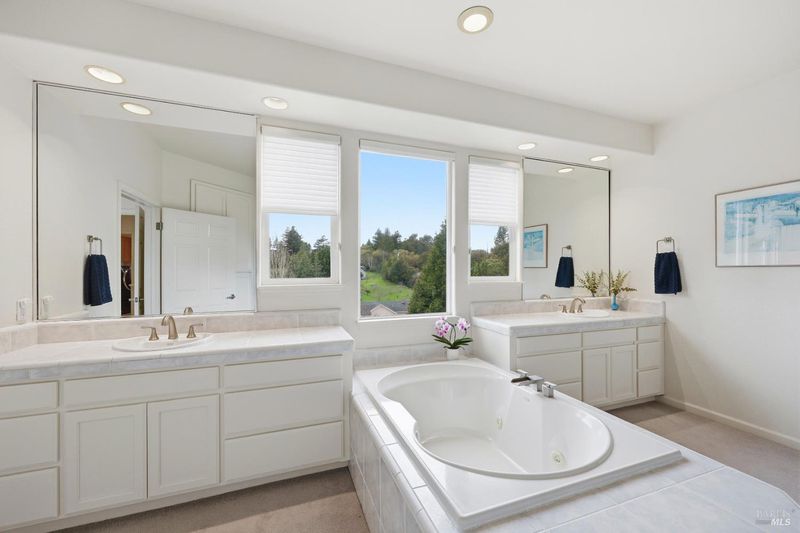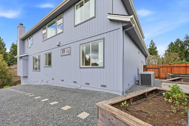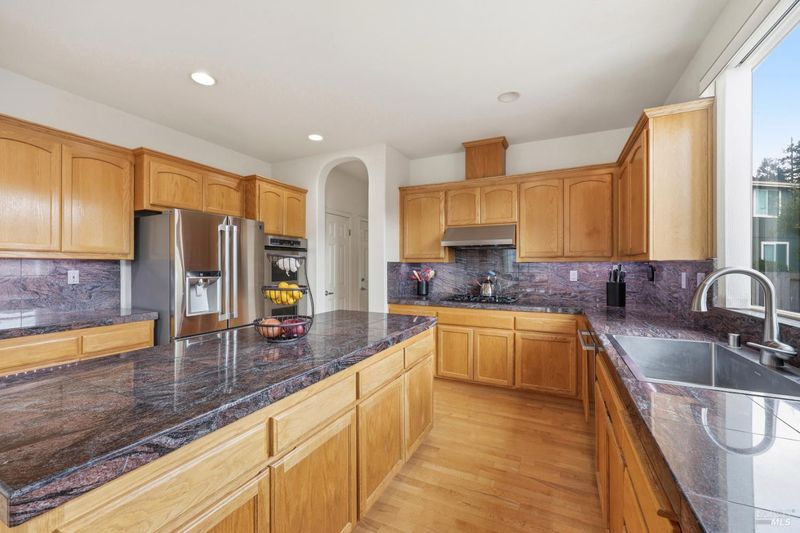 Lovingly maintained by the original owners, this 3,065 sf home features five bedrooms, three full baths, and one half bath. An ensuite bedroom is located on the main level. Cathedral ceilings and natural light grace the spacious living and dining room areas. A dream kitchen with granite island and counters, large pantry, two ovens, warming drawer, gas stove top, and generous cabinetry. The gas fireplace in the family room creates a warm ambiance on cool winter evenings. Your favorite books and art pieces will find the perfect home on the beautiful built-in book shelves. Artistic design creates the elegant primary bedroom with attached bathroom including two individual vanities, jetted tub, stall shower and large walk-in closet. The home features an HVAC system for each level as well as a generator, a three-car garage and raised beds for herbs and vegetables. The large patio area awaits your personal touches with lounges, tables and umbrellas. Close proximity to shops, restaurants, parks, schools and ongoing activities in the quaint town of Sebastopol.