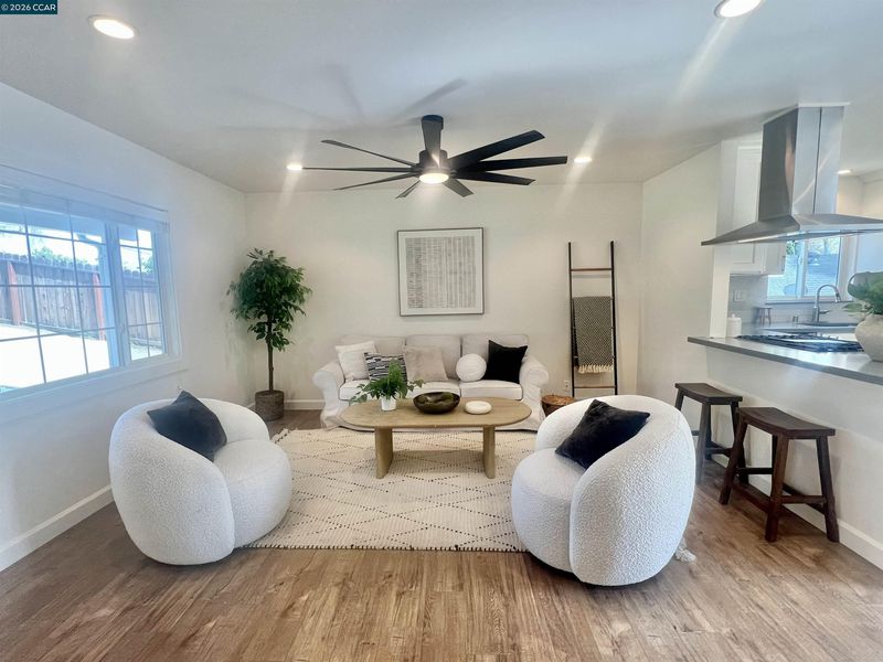 Beautifully renovated and full of charm, this 3 bed 2 bath home offers the perfect blend of modern updates and peaceful outdoor living on a spacious 9,920 sqft lot. Inside you'll find a bright modern kitchen open to the living space designed for everyday comfort and entertaining. The updated kitchen features quartz countertops, stainless appliances and modern finishes. Each bedroom includes its own walk-in closet, offering plenty of storage space. The large primary suite creates a relaxing retreat with a spacious walk-in closet and an modern bathroom featuring a dual sink vanity and large beautiful shower. The updated hall bathroom offers both style and functionality for guests and family.Other features include upgraded electrical and convenient indoor laundry room. Step outside and enjoy the park like backyard setting with mature fruit trees & redwoods. Whether you're relaxing on the front porch or entertaining on the back deck, the outdoor space offers a peaceful setting to unwind. The extra long driveway extends into the backyard, providing potential RV, boat, or trailer parking. The basement area offers excellent storage space or workshop potential. Located near local parks, hiking trails, downtown Martinez shops & restaurants, Martinez waterfront & convenient freeway access
