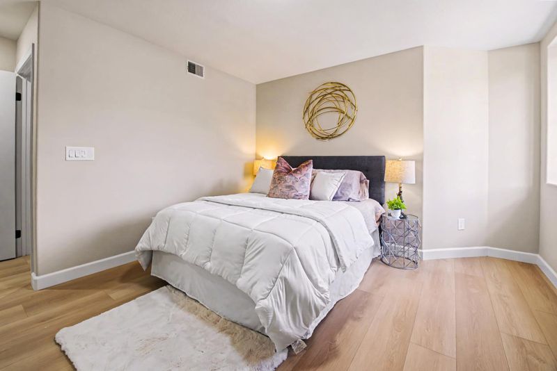This remarkable ground floor, 2-story home is ready for you to move right in! Situated in the desirable, gated and secure Paseo Plaza community, it is your city retreat in vibrant downtown San Jose. The open downstairs floor plan features well appointed dining and living room areas and a brightly lit chefs kitchen with new G.E. stainless steel appliances. The entire unit has new environmentally friendly engineered floors and is professionally painted. New energy efficient light fixtures pour out abundant light. On the 2nd floor are two en-suite primary bedrooms with large walk-in closets. Laundry room. The sparkling bathrooms are upgraded with new Kohler toilets and Moen faucets. Keeping it comfortable is the new central HVAC unit installed in 2024. The secured underground garage has 2 assigned, side-by-side parking spots. The common areas feature a lovely pool and spa; well equipped fitness center; and a social room that can be reserved. Building managers have on-site offices open weekdays. Central location means easy car access to highways 280, 87 and 101, with SJ Airport and Diridon station nearby. Downtown is only steps away from your front door. Enjoy great dining, entertainment and night-life options as well as theaters, museums, pedestrian SJ State University & much more.