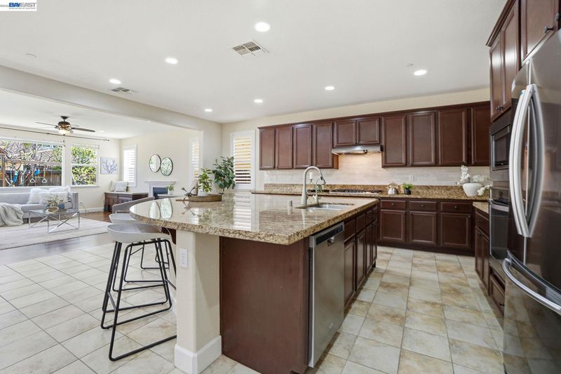 Beautiful upgraded house with great open floor plan. Bright and spacious, gorgeous huge island bar in the kitchen that opens into the family room. Engineered hardwood in all bedrooms/loft/master closet/dining/living room. Plantation shutters on most of the windows. Custom cabinet with quartz counter top in living room. Built in intercom upstairs/downstairs, and Solar system (need to transfer the title). Stunning large California room with cozy fireplace terraced lounge areas and motorized screens. Many fruit trees and small vegetable farming boxes in the back yard. Built in children's playground. Located in a charming desirable neighborhood right in front of the Park, Trails, Schools, HWY 4, shopping and dining.