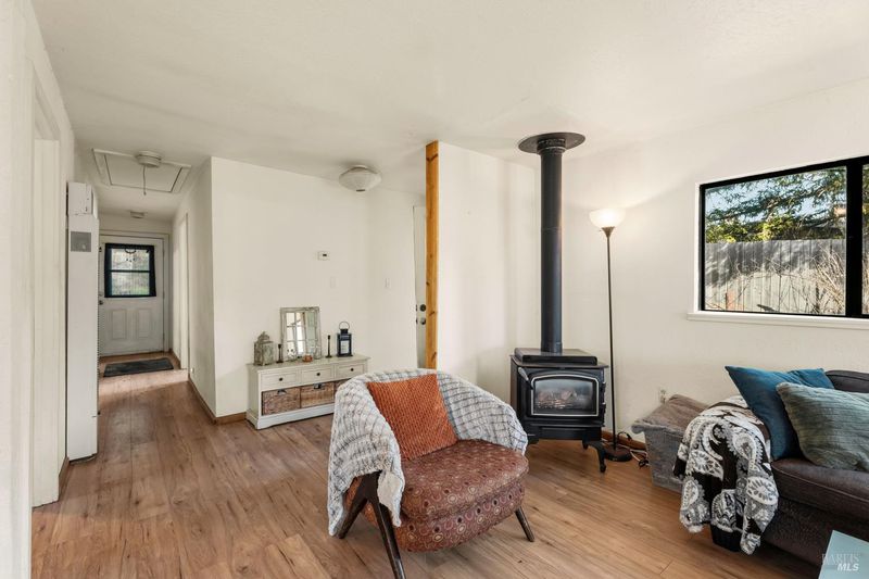 Tucked onto nearly half an acre, this cozy 2 bedroom, 1 bath home offers a comfortable blend of space, practicality, and small-town convenience. The fully fenced lot provides plenty of room for RV storage, animals, gardening, or simply enjoying the extra outdoor space. Inside, the home has seen several recent upgrades. The kitchen features updated cabinets and flooring, creating a clean and functional space for cooking and gathering. A new roof provides peace of mind for years to come. Ample windows throughout the home bring in great natural light. Just off the main living area is a private front porch, an ideal spot to enjoy your morning coffee or unwind in the evening. The home also includes an exterior laundry room with laundry hookups.A flex room adds extra versatility and can easily function as a mudroom, home office, hobby space, or additional storage area depending on your needs. Located within town limits, the property offers convenient access to local amenities while still providing privacy and breathing room. Water is supplied by the local water district.