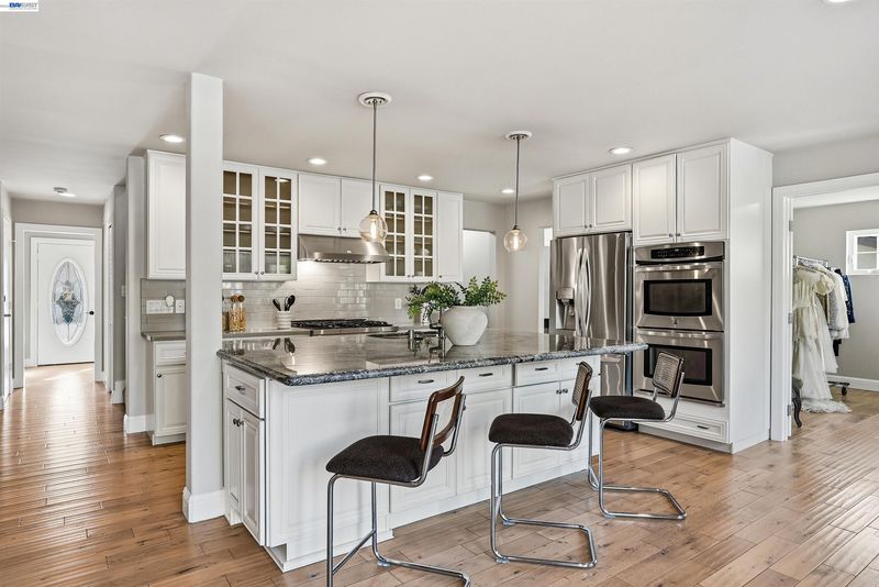 Set on one of Mission San Jose’s most coveted streets, 42194 Camino Santa Barbara offers space, style, and a premier Fremont location. This expansive six-bedroom, three-bathroom home is designed for both comfortable living and long-term flexibility, with two bedrooms and a full bath on the main level. Tastefully refreshed throughout, the residence features updated kitchens and bathrooms, fresh interior paint, newer flooring, and brand-new carpet upstairs. The remodeled kitchen anchors the home with a large island and breakfast bar, opening seamlessly to the family room and eat-in area, while formal living and dining rooms provide elegant spaces for entertaining. Outdoors, the generous lot feels like a private retreat, complete with a sparkling pool, mature greenery, and fruit trees. A sweeping second-story veranda captures beautiful hillside views, creating a serene backdrop just moments from everyday conveniences. Enjoy walkable access to Mission San Jose High School and Highlands Swim Club, plus convenient freeway connections for Bay Area commuting. A rare opportunity to own a beautifully appointed home in one of Fremont’s most established neighborhoods.
