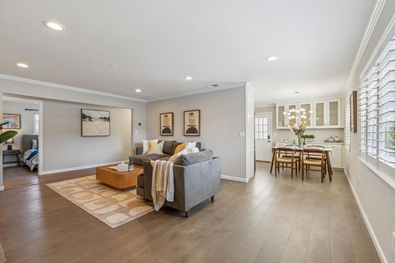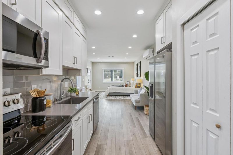 Welcome to 1779 Foxworthy Avenue in San Jose! This updated property features a 3-bedroom, 2-bath main home plus a fully permitted studio ADU with its own private entrance from the front yard, offering flexibility for guests, extended family, or rental income. The bright living room features plantation shutters, recessed lighting, and an electric fireplace with custom tile mantle and surround. The kitchen showcases quartz countertops, white shaker cabinets with soft-close doors, tile backsplash, and stainless steel appliances including a Samsung 5-burner gas cooktop and oven, Samsung microwave, Kenmore French door refrigerator, Whirlpool dishwasher, and stainless exhaust hood. The dining area includes a chandelier and built-in buffet cabinetry. Additional features include central heating and A/C, dual pane windows, Nest thermostat, smart door lock, video doorbell, Tesla Level 2 EV charger, and smart garage opener with myQ. The ADU offers high ceilings, recessed lighting, laminate flooring, full kitchen, bathroom, washer/dryer, and its own water heater. Backyard with new sod and storage shed. Close to Safeway, Trader Joes, Costco, Doerr Park, Almaden Lake Park, Good Samaritan Hospital, and Highways 85 and 87.