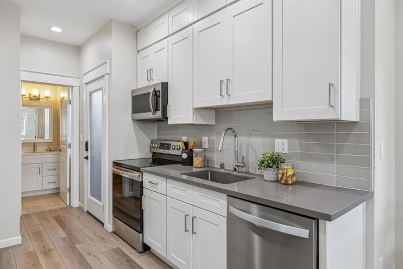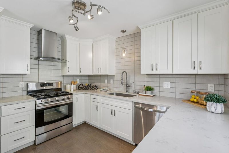 - Countertop - Quartz, Dishwasher, Exhaust Fan, Garbage Disposal, Oven Range - Gas, Refrigerator