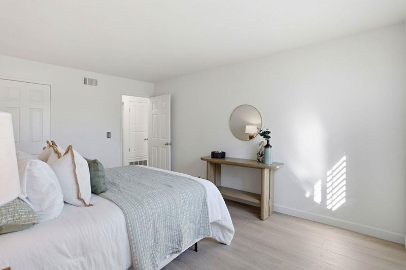 Welcome to this light and bright Palo Alto condo located in the highly sought-after Greenhouse community, known for its beautifully maintained grounds and access to award-winning Palo Alto schools. Perfectly positioned near local shops and dining, this top-level residence offers privacy and ease of living. Step inside to discover new flooring throughout and a spacious living area filled with natural light. Sliding doors in the living room open to a private patio overlooking the relaxing pool and well-maintained grass area. The kitchen features ample storage, a classic subway tile backsplash and plenty of counter space. A separate dining area offers serene views of the mature landscaping outside, enhanced by plantation shutters. Two generously sized bedrooms are filled with natural light and offer large storage closets along with plantation shutters for added charm. As a top-level unit, this home enjoys added privacy and an abundance of sunlight. Additional amenities of the home include new fixtures, in-unit laundry and a private garage. Ideally located with easy access to Stanford, Downtown Palo Alto, Downtown Los Altos and local tech companies. Community amenities include a pool, BBQ areas, clubhouse and an exercise course.