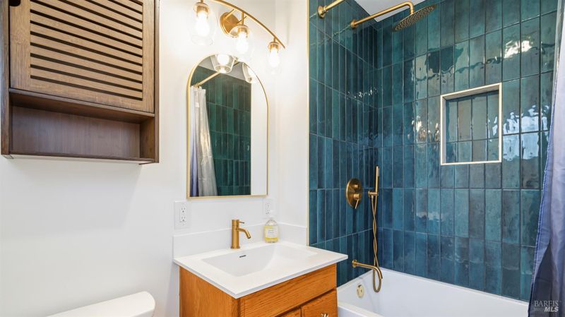 Located in the highly sought-after Bennett Valley States' neighborhood, this updated 1950s home combines classic character with thoughtful modern improvements. The kitchen offers breakfast bar seating and views of the backyard, with an adjacent dining area and wet bar for added flexibility. The fully renovated primary bathroom features high-end finishes and a deep Japanese soaking tub, creating a spa-inspired retreat. A skylight fills the secondary bathroom with natural light, enhancing the home's bright and open feel. A new sliding glass door opens to a vine-covered deck and brick patio, creating a comfortable outdoor space for relaxing or entertaining. The backyard also includes a studio shed for potential office, workout or storage and space to enjoy Sonoma County's warm evenings. Energy-efficient features include owned solar with a Tesla battery backup system, EV charging capability, a tankless water heater, and argon-filled windows that bring in abundant natural light throughout the home. Conveniently located just minutes from Howarth Park, Spring Lake, and Annadel State Park, offering easy access to hiking, biking, boating, and some of Santa Rosa's best outdoor recreation, along with nearby shopping, dining, and everyday conveniences.