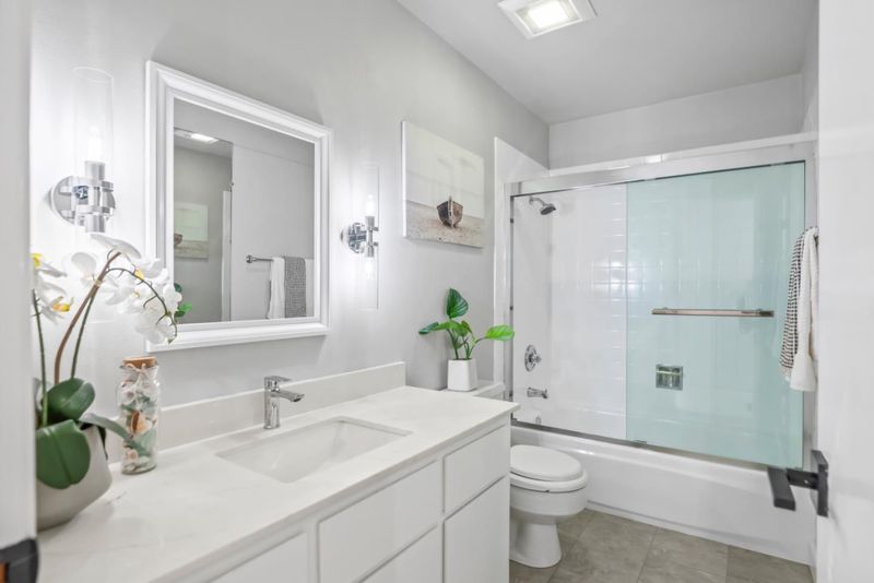 Stylish updates, large balcony overlooking tranquil water feature, & three pools just 2.0 miles to Apple Spaceship Campus! This inviting home offers spacious, open-concept living room & dining area, perfect for relaxing & entertaining. The modern kitchen boasts quartz counters & backsplash, plus new appliances for everyday ease. Both bathrooms shine with new quartz countertops, sinks, mirrors, & fixtures. Chic accent walls add character, & the home includes A/C & two heating units. Arguably, one of the best locations in the entire complex as it is uniquely positioned directly in view of a serene pond with twin fountains. Plus, you're centrally-located to all amenities & just a few dozen feet from one of the community's three pools. Other offerings include two clubhouses, two playgrounds, hot tub, wading pool, on-site car wash, assigned covered parking, & storage locker! Central Silicon Valley location near major tech employers including Apple Spaceship Campus & NVIDIA; major thoroughfares for commuters; high-end amenities; public parks including 0.2 miles to the 52-acre Central Park with pickleball courts, public library, lit tennis courts, & Magical Bridge playground, & more! Excellent schools: Central Park Elementary, Cabrillo Middle, & Santa Clara High (buyer to verify)!