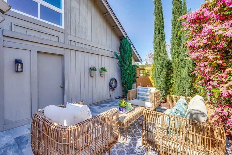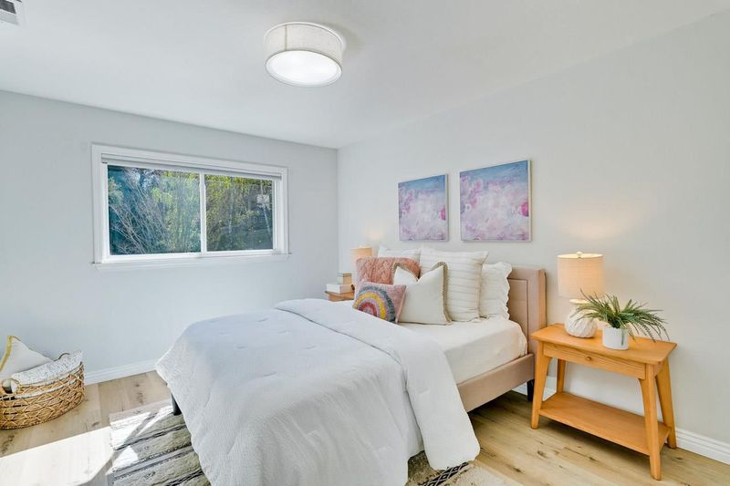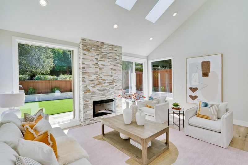 Stunning remodeled home nestled in a desirable cul-de-sac neighborhood with academically distinguished Cupertino schools! This thoughtfully designed floor plan features a main-level bedroom ideal for guests or home office. Dining area flows seamlessly into the impressive living room with soaring vaulted ceiling, fireplace, skylights, picture windows, and a sliding glass door that fills the space with natural light, creating a bright setting ideal for everyday living and entertaining. Gourmet kitchen complete with quartz countertops, backsplash and stainless steel appliances including gas cooktop, refrigerator, dishwasher, double ovens, microwave, along with pantry, an abundance of cabinets, and breakfast bar for casual dining. Contemporary landscaped backyard offers a serene atmosphere to relax or play with elegant sitting wall, decorative greenery, and access to surrounding greenbelt. Bathrooms with modern tile vanities, lights fixtures, and full baths include the added luxury of sleek spacious tiled shower enclosures. Outstanding amenities: primary bedroom with walk-in closet, secondary bedrooms with ample closet space, indoor laundry, attached two car garage, bonus loft area. Convenient location close to Stevens Creek Trail, Blackberry Farm, nearby parks, shopping, dining.