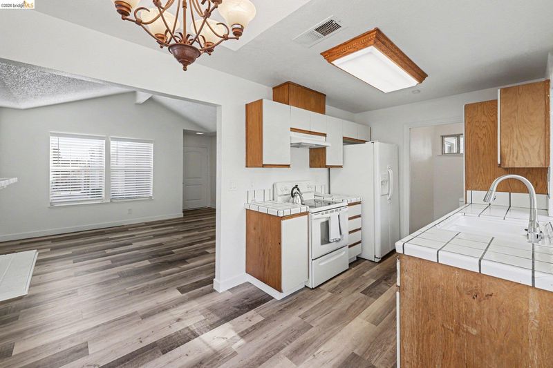 Updated 2 bedroom 2 bath single family home with 2 car garage. Fresh interior paint and new laminate flooring throughout. Open floor plan with lots of natural light. Kitchen features range/oven, dishwasher, refrigerator and washer/dryer all included. Newer exterior paint/siding. Large fenced lot with tons of possibilities. Located off Hillcrest with views of hills and close to walking trails and Bart Station!