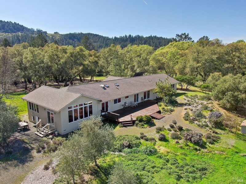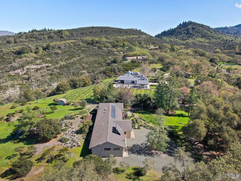Set in the western hills just above Calistoga, 5809 Sharp Road offers a rare blend of Wine Country views, privacy, and opportunity on a 2.2 acre parcel. Though the property carries a coveted Calistoga address, it sits just across the Sonoma County line, an advantageous location where short-term rental permits may be possible, subject to county application and approval. The three-bedroom, two-bath residence is oriented to capture sweeping views of Mount St. Helena, with the landscape unfolding dramatically beyond the home's main living spaces. A generous family room with vaulted ceilings creates an airy gathering place where large windows frame the mountain backdrop, while the open-concept kitchen connects seamlessly to the living areas, enhancing both the sense of space and the home's natural flow. Thoughtful improvements contribute to both comfort and efficiency. The home is equipped with solar power and a Tesla battery system, complemented by new multi-pane windows, resulting in notably low annual energy costs. A prolific well provides abundant water, supporting both the residence and the surrounding landscape with ease. Practical features add further appeal, including four spacious garage bays (ideal for collectors, hobbyists, or those seeking additional workspace) with ample room to accommodate a workshop or storage for Wine Country lifestyle pursuits. Bordered by larger surrounding parcels, the property enjoys a peaceful sense of seclusion while remaining just minutes from downtown Calistoga's celebrated restaurants, tasting rooms, and spas. Complete inspections have been conducted, and the property is offered as-is, presenting a compelling opportunity for its next steward to update, personalize, or simply enjoy the remarkable setting. With inspiring mountain views, flexible living spaces, strong infrastructure, and potential for short-term rental use, 5809 Sharp Road represents a distinctive foothold in the northern Napa Valley lifestyle.