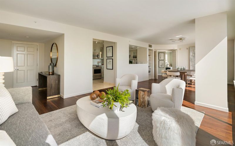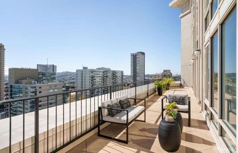 Exceptional view condominium at The Sutterfield! Featuring three expansive south-facing walkout terraces spanning the full length of the residence, offering sweeping outlooks of Salesforce Tower, the downtown skyline, Grace Cathedral, and the Bay. Inside, an updated kitchen flows into an open-concept living and dining space ideal for entertaining, with seamless access to the terraces for indoor-outdoor living. The generous primary suite features two closets, including a walk-in. Two additional bedrooms provide flexibility for guests or a home office. In-unit laundry is also included. Located in a full-service luxury building with 24-hour door person, elegant lobby, fitness center, spa and secure two-car garage parking. Sophisticated San Francisco living at The Sutterfield.