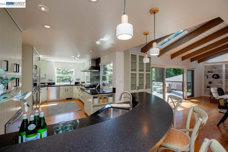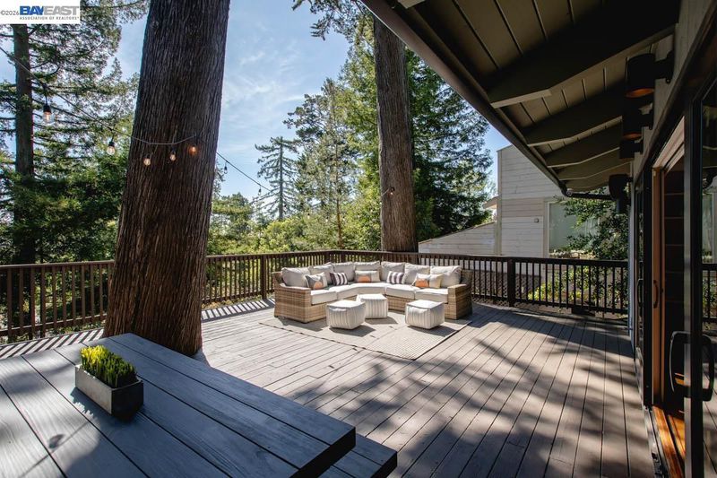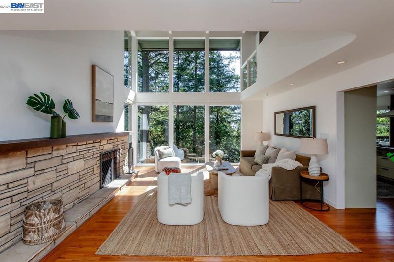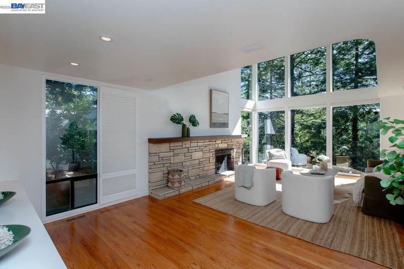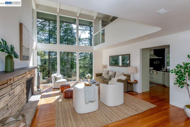 Located just 5 minutes from the restaurants, local businesses and schools in Oakland's desirable Montclair Village neighborhood, this fabulous Mid-Century Modern offers a sophisticated, multi-level home in a private, sanctuary-like setting with forest views from nearly every room. Nestled in the Oakland hills, the home was built in 1966 and features 3 bedrooms, 3 bathrooms, a two-story living room with floor-to-ceiling windows, a large dining room/family room combination that opens to an expansive outdoor deck, an office with a custom California Closets work space, and a spacious contemporary kitchen with a breakfast bar, granite counters + Miele, Bosch, Wolf & Sub-Zero appliances. Features include main level oak floors + bedroom carpeting, two fireplaces, spacious outdoor decks, soaring vaulted/cathedral ceilings, a built-in sound system & windows perfectly placed to frame the redwood trees surrounding the property. The spacious primary bedroom suite includes a beautiful ensuite bathroom w/contemporary finishes + a steam shower. This convenient East Bay location provides easy access to Hwys 13/24/580, and everything that nearby Rockridge, Elmwood, Berkeley and Uptown Oakland have to offer. Only 20 min to San Francisco's Embarcadero via Rockridge BART. Exceptional--must see!