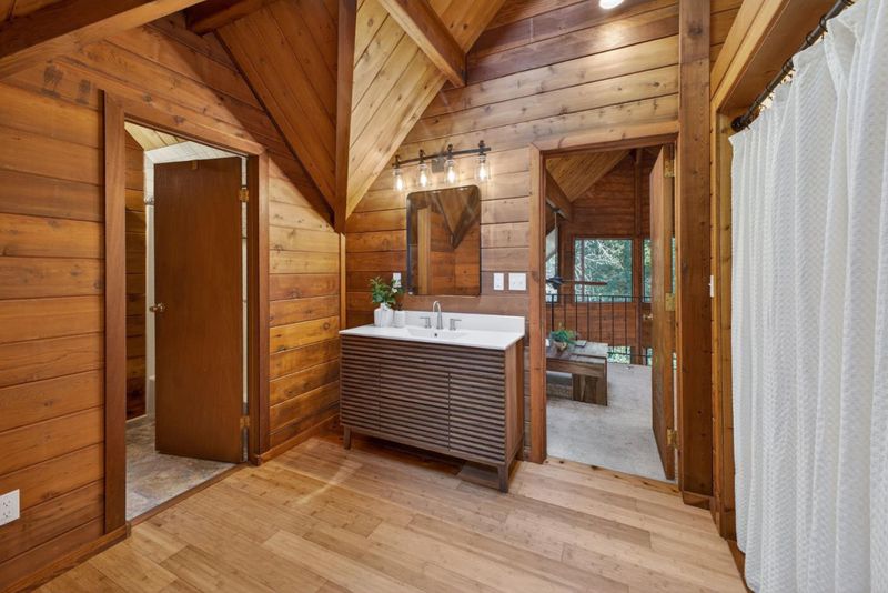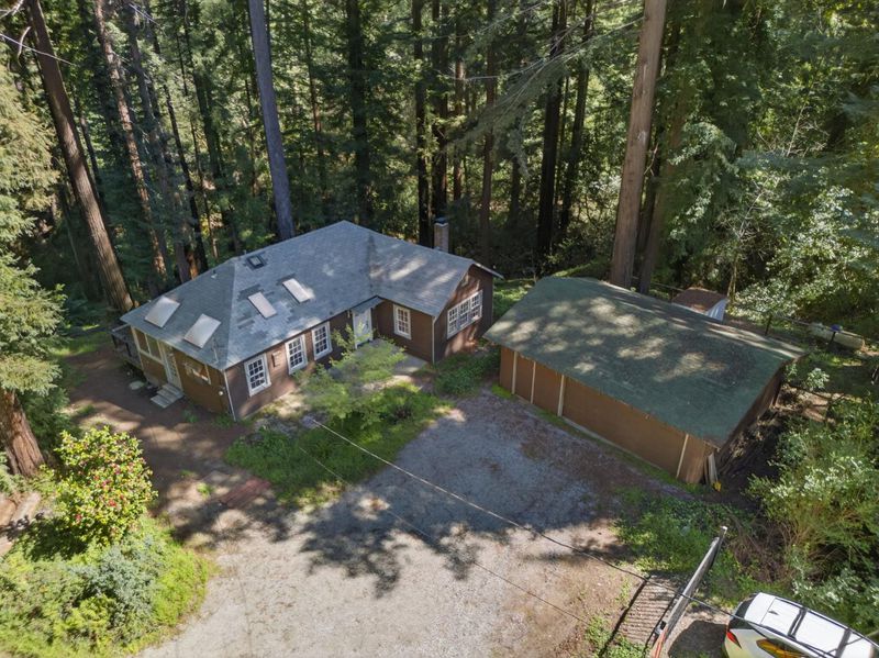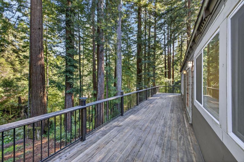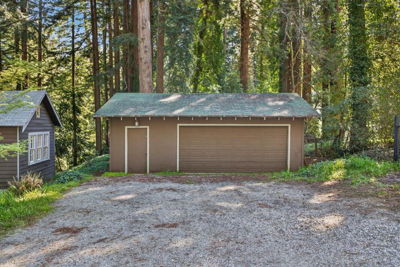This rare property offers two homes on nearly an acre of lush forested land with private creek frontage and river access. This peaceful mountain retreat that feels secluded yet remains close to town. Both homes include indoor laundry hook ups and decks overlooking the surrounding forest. The main A-frame home is approximately 1,775 sq. ft. with three bedrooms and two bathrooms. Large windows and soaring ceilings fill the open living area with natural light. The remodeled kitchen features quartz and butcher block countertops, stainless steel appliances, custom cabinetry, Sub-Zero refrigerator, and pantry. Bathrooms are tastefully updated, and the sellers have also invested in meaningful functional improvements including plumbing, electrical, and additional infrastructure upgrades, ensuring the home is enhanced both cosmetically and structurally. The second home offers approximately 1,185 sq. ft. with a spacious bedroom, bathroom, and flexible living area, and thoughtfully designed kitchen with garden window. An oversized driveway, a spacious two-car garage with work bench and room for a workshop, convenient access to Highway 9, close proximity to Big Basin, and a short drive to downtown complete this exceptional property.
