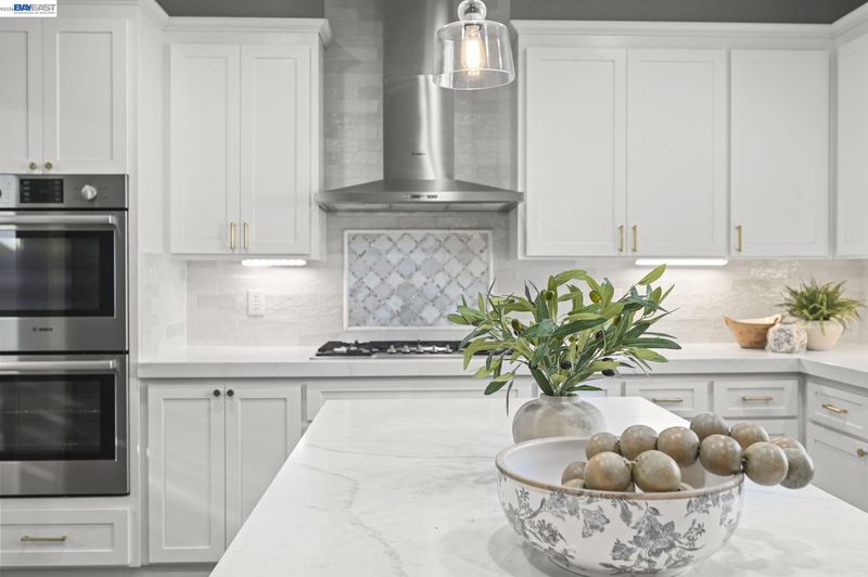 - Dishwasher, Double Oven, Gas Range, Plumbed For Ice Maker, Microwave, Oven, Breakfast Nook, Counter - Solid Surface, Eat-in Kitchen, Disposal, Gas Range/Cooktop, Ice Maker Hookup, Kitchen Island, Oven Built-in, Pantry, Updated Kitchen, Wet Bar