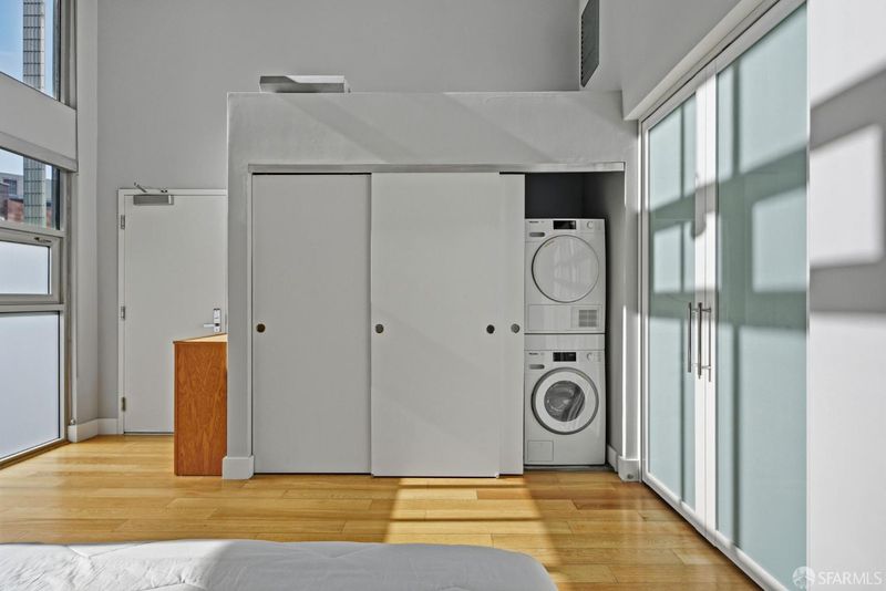 A distinctive blend of texture, warmth, and architectural elegance by renowned architect Stanley Saitowitz. This remarkable full-floor penthouse offers a perfect balance of modern sophistication and timeless comfort. Completed approximately fourteen years ago, the residence features two beautifully appointed bedrooms plus a separate office/den. The primary suite includes an Elfa custom closet and a spa-inspired bath with an oversized shower. A private elevator opens directly into the home, revealing soaring ceilings, floor-to-ceiling windows, and refined oak floors with radiant heat. The sleek, contemporary kitchen anchors the open living space with generous counter area and ample storage ideal for both daily living and entertaining. The dramatic living and dining area opens to a private deck, perfect for morning coffee or evening gatherings. Additional highlights include custom window coverings, in-unit laundry, and access to a rooftop deck with sweeping downtown views. Steps from Salesforce Tower and the Transbay Terminal, surrounded by cafs and fine restaurants, this is sophisticated city living at its finest.