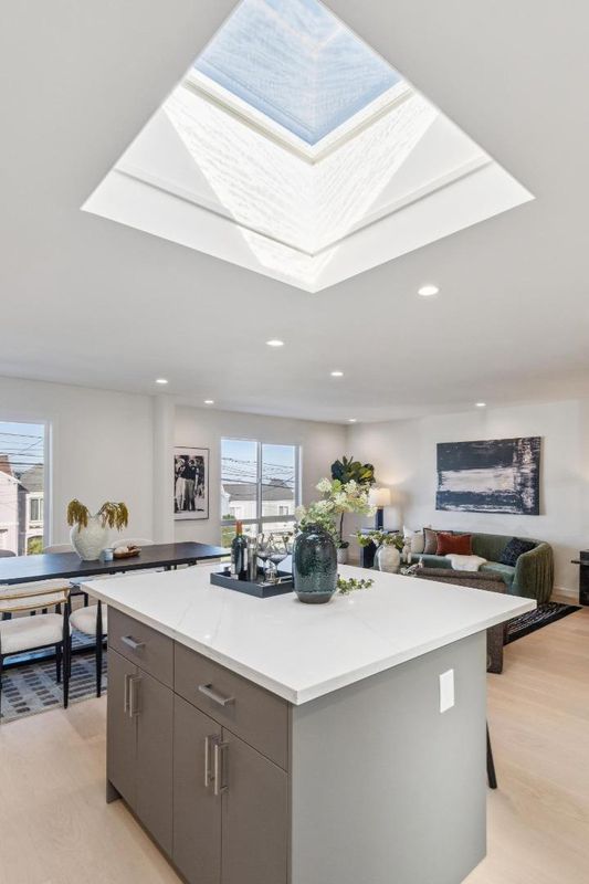 This spacious three bedroom, three bathroom home beautifully blends modern design with classic charm. The main level features an open layout that showcases a newly built living and dining area centered around a chefs kitchen, complete with matching Thermador appliances and an electric skylight. These skylights and new windows fill the home with abundant natural light, while radiant flooring throughout the house provides warmth and comfort year-round. The lower level offers exceptional flexibility with a family room, an additional bedroom, and a full bathroom, ideal for guests, extended family, or a private retreat. Thoughtful upgrades include all new electrical, plumbing, cast iron sewer pipes, and water supply lines. The landscaped backyard reflects the neighborhoods charm and features new privacy fencing, perfect for outdoor entertaining or a safe play space for children. Ideally located within walking distance of Parkside Square Park, local dining, and the shops and cafes along Taraval Street, this home offers comfortable luxury in one of San Francisco's most vibrant and welcoming neighborhoods.