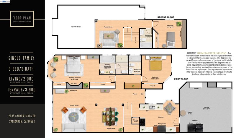 Stunning Mount Diablo and golf course views highlight this beautifully maintained home located in the highly desirable gated Canyon Lakes community. Offering a bright and versatile floor plan, this home combines comfort, elegance, and scenic surroundings. A charming courtyard patio with a tranquil fountain welcomes you upon arrival. Inside, the remodeled gourmet kitchen features custom cabinetry, granite countertops, and stainless steel appliances, opening to the light-filled family and dining rooms with vaulted ceilings, a cozy fireplace, and sliding doors leading to the inviting patio with sweeping views. The primary suite is conveniently located on the main level, featuring vaulted ceilings, a fireplace, and a spa-inspired bath with dual vanities, soaking tub, and oversized shower. The first floor also includes an additional bedroom and full bathroom.Upstairs offers a third bedroom, full bath, and a large loft/office that can easily be converted into a fourth bedroom. Entertain on the private patio while enjoying golf course and Mount Diablo views. Residents enjoy 24-hour security, swimming pools, tennis courts, walking paths, and golf course access, all just minutes from top-rated San Ramon schools, City Center Bishop Ranch, shopping, dining, parks, and major commuter routes.