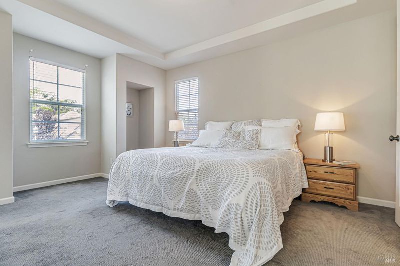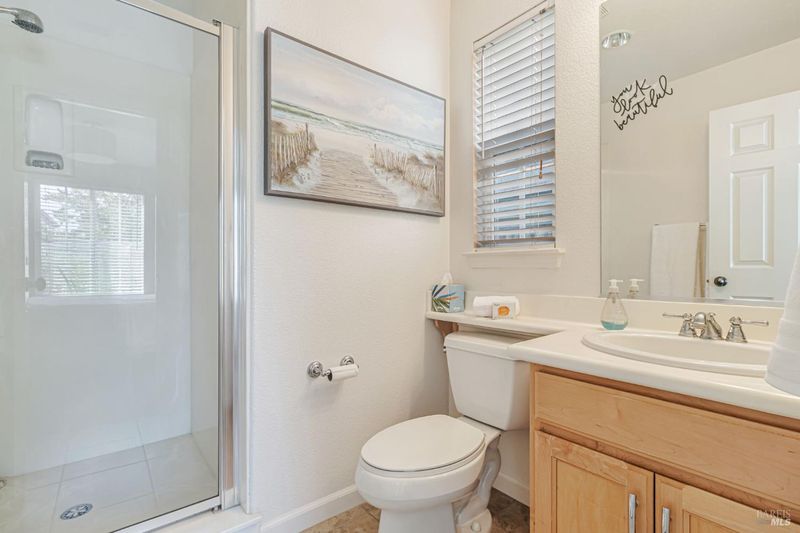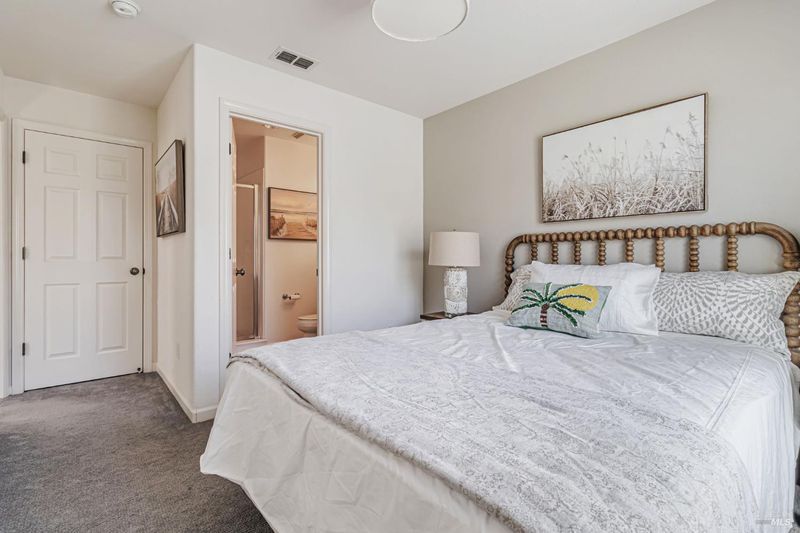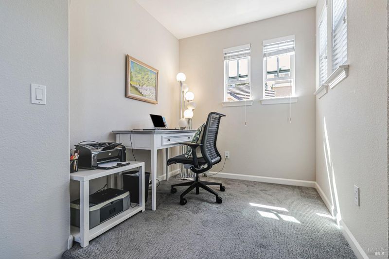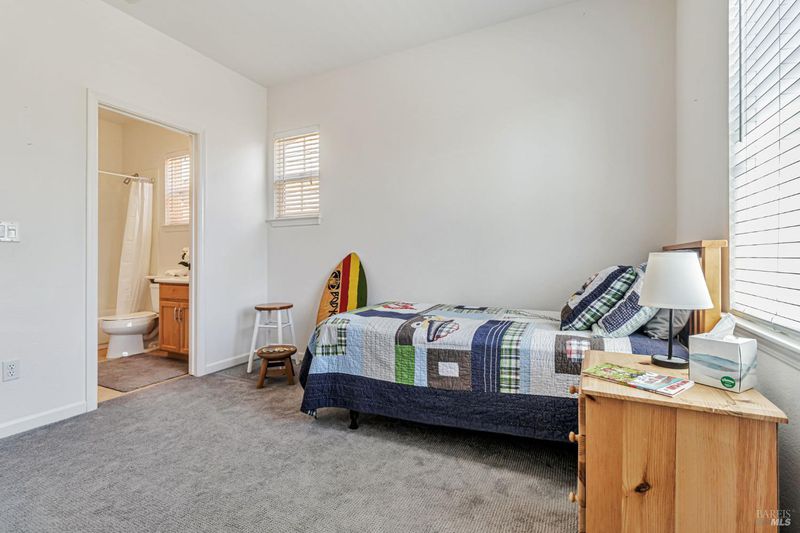 Appealing newer Hamilton home in Hamilton's smallest neighborhood, Hideaway. If natural light is important to you this house has it. Most rooms have windows on two sides for bright even light. Two story great room has a wall of windows facing the back yard. Open kitchen has dining nook and a window above the sink. Patio is off the kitchen. Ensuite bedroom on first floor plus a powder room. Two ensuite bedrooms upstairs separated by a laundry room. Office by the front door with double doors for privacy can serve multiple purposes. Formal dining room. Primary bedroom has alcove for office or nursery, two closets and a bath with tub and shower. Bedrooms have privacy with attached baths and no common walls. Bay window in office, niches in upstairs bedrooms, high ceilings on both levels give character to the space. Backyard has lawn and perennial plantings. Wide plank hardwood floors on first floor, low maintenance cement siding, Two zone AC, and 2 car garage with a finished floor. Located by the cul-de-sac of San Pablo Court, a quiet low traffic street near the Hamilton pool, the play park, soccer field and access to the bay trail. Children and neighbors gather in the safety and privacy of the court. Only 19 homes in this neighborhood called "Hideawa