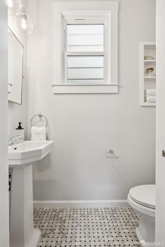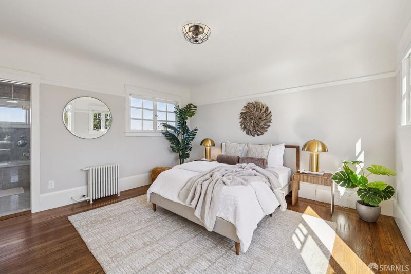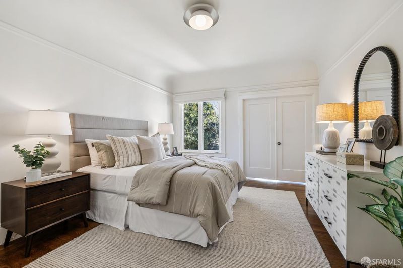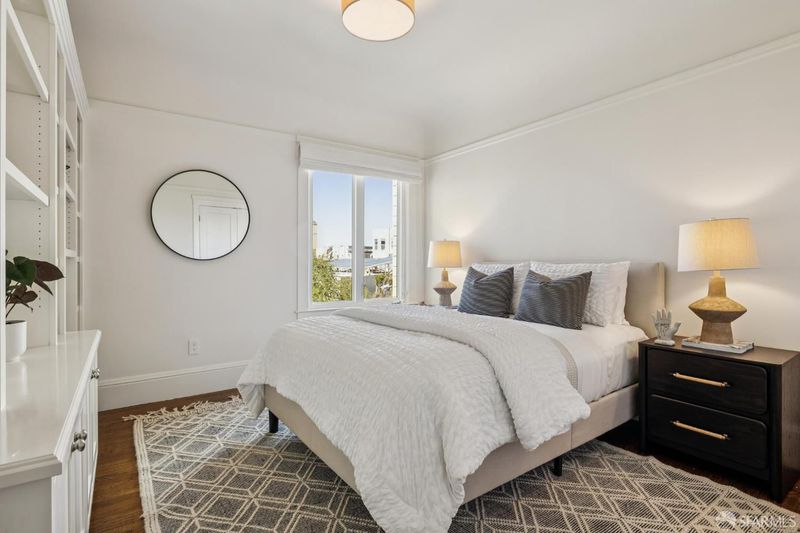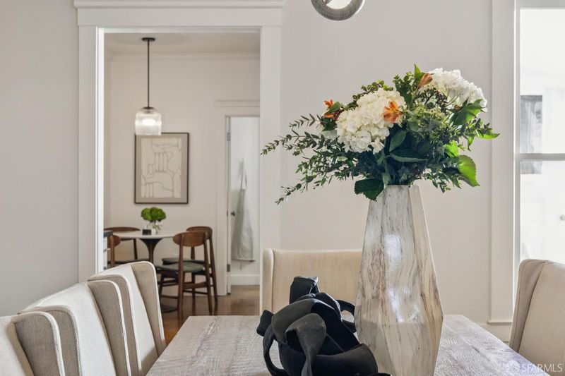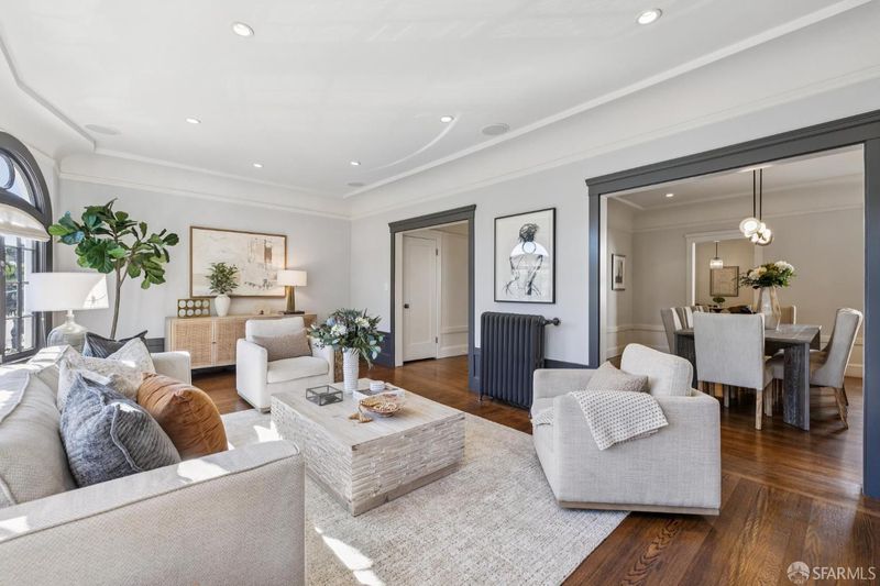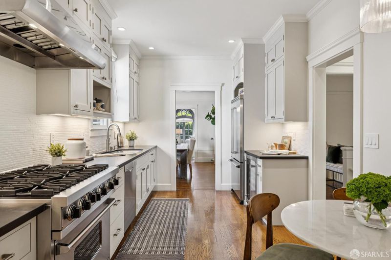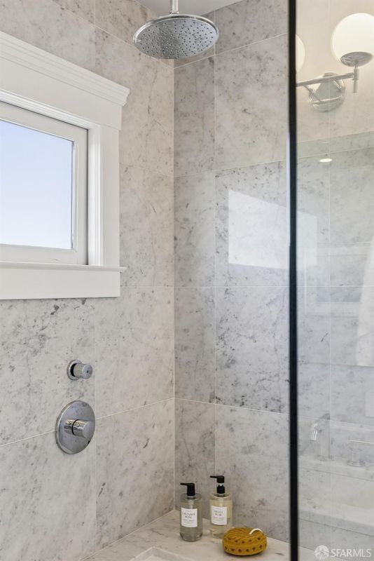 Stylishly remodeled top-floor Marina-style condominium in a wonderful Central Richmond location. This bright and spacious residence offers 3 bedrooms plus a sunroom and 2.5 baths across two levels. Beautifully restored period detailsincluding hardwood floors, crown moldings, and bay windowscomplement thoughtful modern updates. The eat-in kitchen features honed granite counters, glass tile backsplash, and premium Viking and Bosch appliances, plus a wine refrigerator. Formal living room with wood-burning fireplace and adjoining formal dining room create wonderful entertaining spaces. The generous primary suite includes a spa-like marble bath with soaking tub, heated floors, and a private walk-out deck. In-unit Bosch washer/dryer, pantry, recessed lighting, in-ceiling speakers, shared garage parking, and private roof deck. Low HOA dues of $200/month.