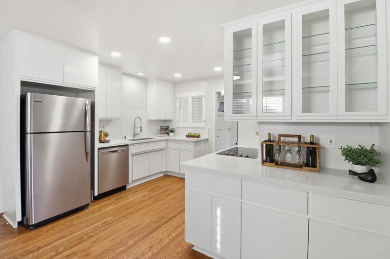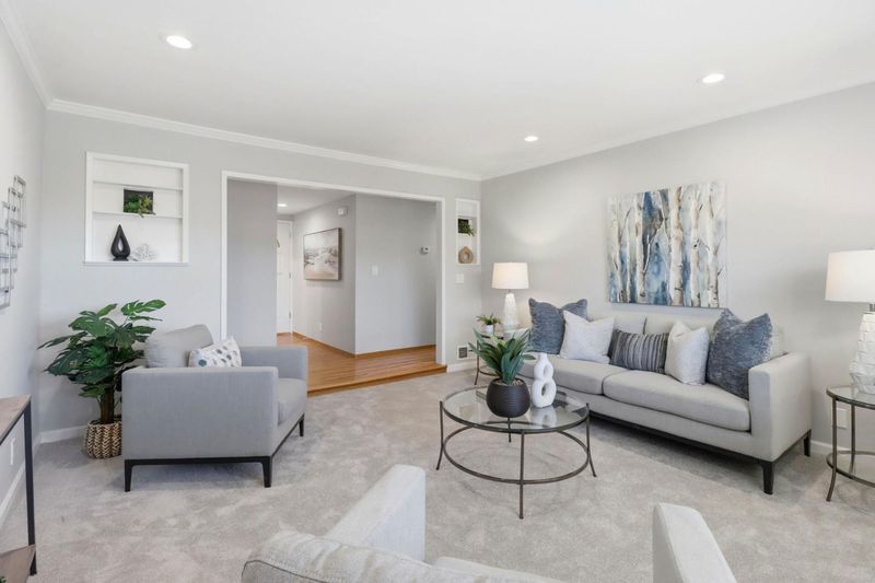 Welcome to this fantastic 4-bedroom, 2-bathroom home located in a great Cambrian area. With approximately 1,700 square feet of living space, this residence offers a comfortable and inviting atmosphere with a family room with fireplace and exposed beam wood ceiling. The refreshed kitchen features Quartz counters, new double oven, cooktop range, dishwasher, oversized SS sink, and recessed lighting. There are gleaming hardwood floors in Kitchen, Dining Area and bedrooms. Remodeled hall bath has new tile flooring, vanity, tub and quartz solid surround above tub, and new plumbing fixtures,. The primary bath has new tile floor , new vanity, new shower with quartz solid walls. Relax in your step-down living room with new carpeting, and recessed lighting, Additional amenities include central heat and AC, convenient dining area, ideal for csasual meals, new blinds and recessed lighting inlight fixtures. The property also includes a two-car garage, offering plenty of storage and parking space. Situated within the highly rated Union Elementary School District, The rear yard is perfect for entertaing with raised garden beds with beautiful stone and brick, & many fruit trees. Don't miss the opportunity to make this beautiful home your home!!