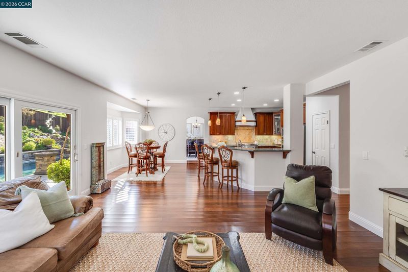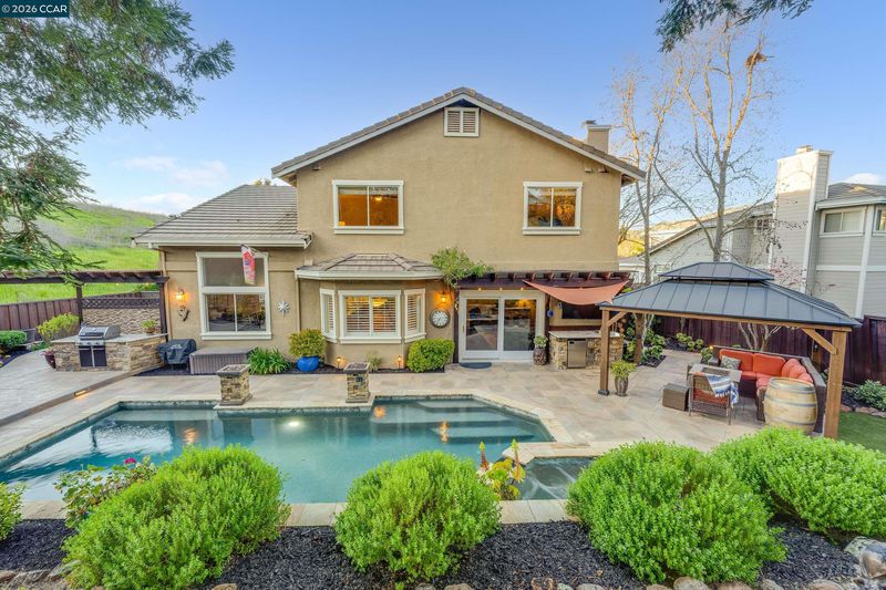 Open Sunday 1-4PM! This meticulously maintained & beautifully updated North facing Tassajara Ranch home enjoys a quiet end of a cul-de-sac location with serene views of Mt. Diablo. This 5BD-3BA home (1BD-1BA on 1st floor!) is 3,275 SF on a .18-acre lot per assessor records. The entry opens to the custom stone wall & banister featuring rod iron & stained wood railing. The formal living & dining rooms have vaulted ceilings, Bamboo wood floors & views of the adjacent open space & backyard. The open gourmet kitchen features DCS appliances including a gas cooktop, warming drawer, SS appliances, pantry, beautiful wood cabinetry, granite counters, breakfast bar, eating area, recessed LED lighting & eating area. The adjacent family room with stone-faced gas fireplace perfectly combines with the kitchen creating a fantastic entertaining area & opens to the backyard through the Anderson sliding glass door. The downstairs bedroom, currently used as an office, has an updated full bathroom with Travertine tile shower & floors. (Great for in-laws and/or guests) The backyard Oasis will amaze you with its features including a completely renovated Pebble-Tec swimming pool, spa & waterfall! Features of the home include a newer 2 zone HVAC system, owned SOLAR, immaculate 3 car garage & tile roof.