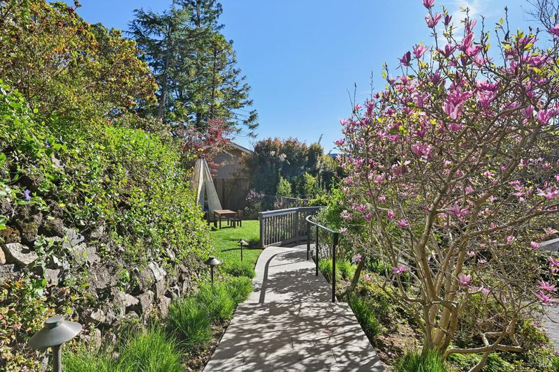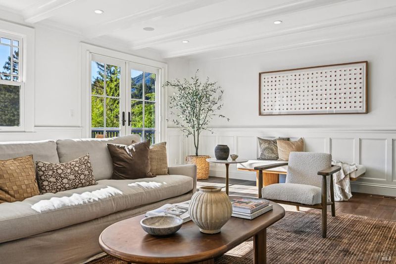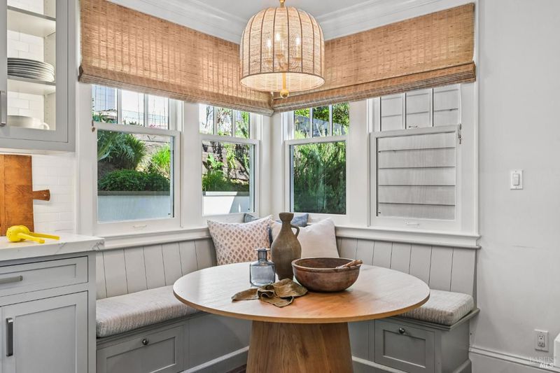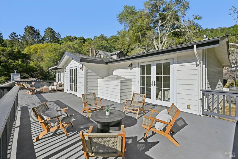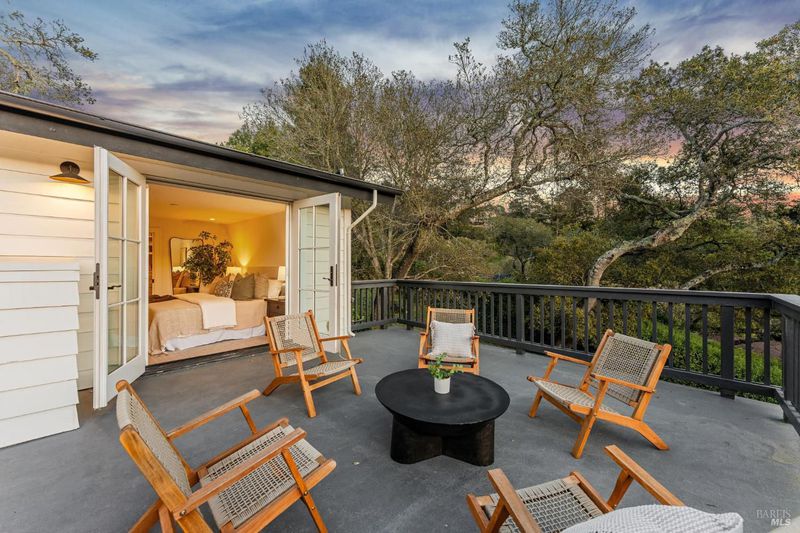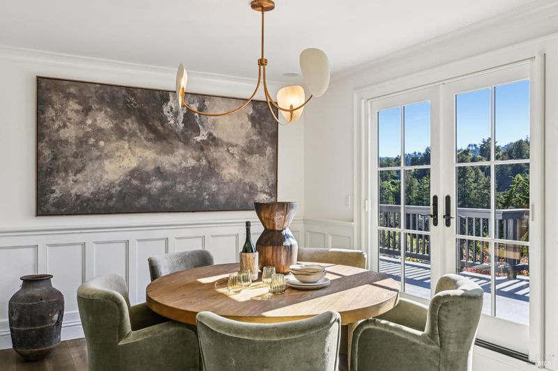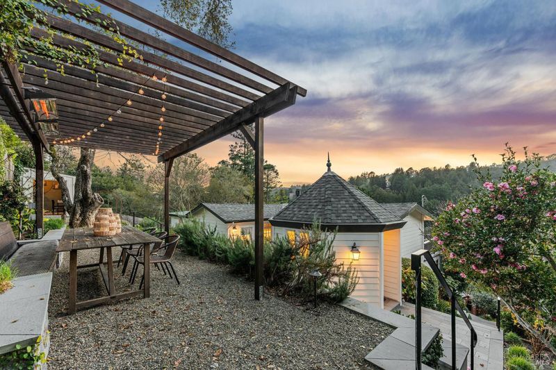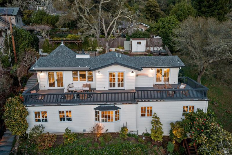 108 Eldridge Avenue is an extensively updated 5 bedroom, 2.5 bath residence offering over 2,700 square feet of living space, blending classic Mill Valley character with thoughtful updates and an exceptional outdoor environment designed by award-winning landscape designer Christian Douglas. Blue stone steps lead through the landscaped grounds, creating a memorable and intentional arrival. The outdoor spaces are beautifully designed for everyday enjoyment and entertaining, including an upper terrace ideal for al fresco dining with a pergola and built in heaters for year round use. The interior offers warm, light filled spaces with a functional and flexible layout. The timeless kitchen features custom cabinetry, a well considered design, and a charming breakfast nook with built-in bench seating. Classic architectural details are preserved throughout, including detailed trim, wainscotting, and a grand entry foyer. A large southwest facing deck spans from the living room to the primary bedroom, creating exceptional indoor-outdoor flow. The primary bedroom has direct access to the deck, offering a peaceful retreat, as well as a walk-in closet and dual sink vanity. The lower level includes four additional bedrooms, a full bath, a laundry room, and a dedicated romp/media room, providing excellent separation of space and flexibility for family living, guests, or work from home needs. Additional features include a 2 car garage, yard, office shed, terraced garden beds, and built-in outdoor grill. Strolling distance to downtown Mill Valley, parks, and trails, 108 Eldridge Avenue offers a rare combination of timeless architecture, modern comfort, and professionally designed outdoor living.