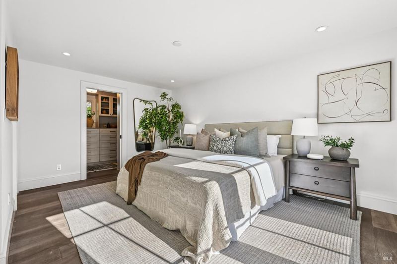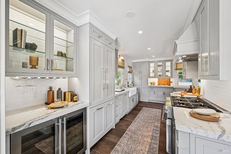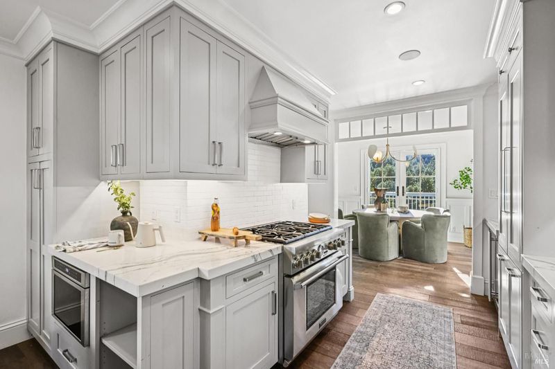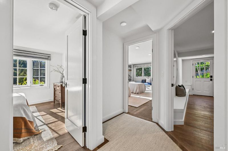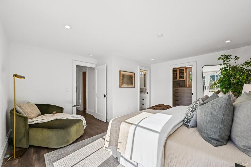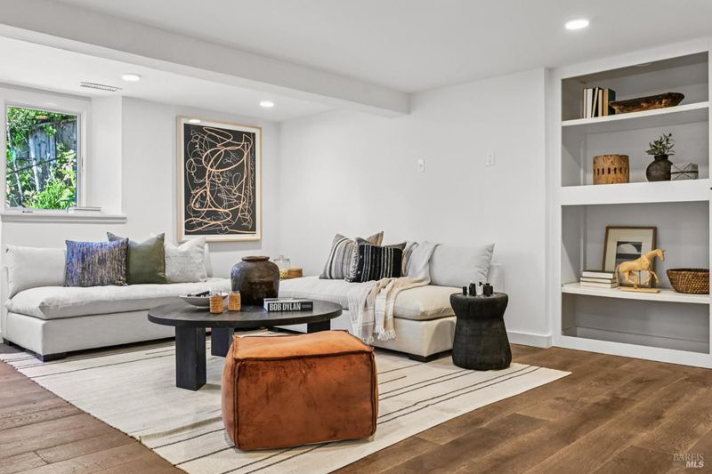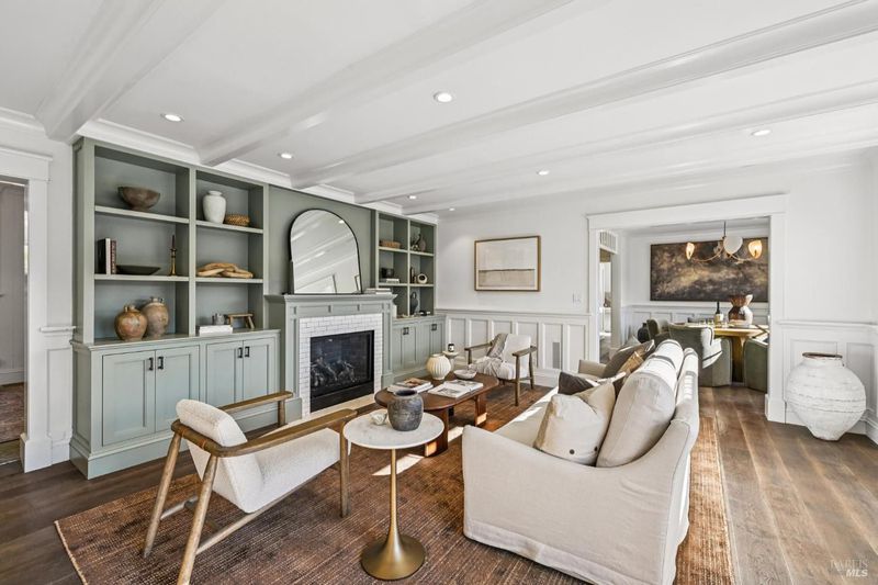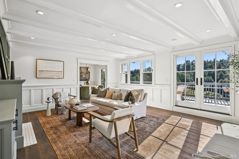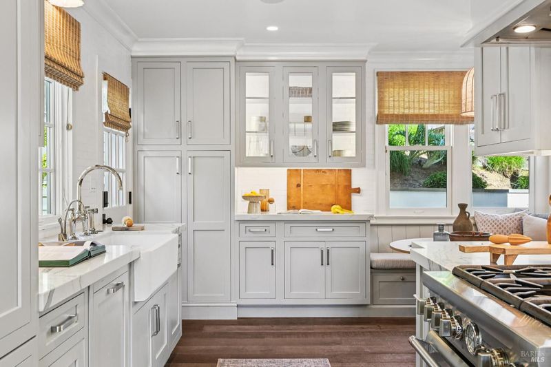 108 Eldridge Avenue is an extensively updated 5 bedroom, 2.5 bath residence offering over 2,700 square feet of living space, blending classic Mill Valley character with thoughtful updates and an exceptional outdoor environment designed by award-winning landscape designer Christian Douglas. Blue stone steps lead through the landscaped grounds, creating a memorable and intentional arrival. The outdoor spaces are beautifully designed for everyday enjoyment and entertaining, including an upper terrace ideal for al fresco dining with a pergola and built in heaters for year round use. The interior offers warm, light filled spaces with a functional and flexible layout. The timeless kitchen features custom cabinetry, a well considered design, and a charming breakfast nook with built-in bench seating. Classic architectural details are preserved throughout, including detailed trim, wainscotting, and a grand entry foyer. A large southwest facing deck spans from the living room to the primary bedroom, creating exceptional indoor-outdoor flow. The primary bedroom has direct access to the deck, offering a peaceful retreat, as well as a walk-in closet and dual sink vanity. The lower level includes four additional bedrooms, a full bath, a laundry room, and a dedicated romp/media room, providing excellent separation of space and flexibility for family living, guests, or work from home needs. Additional features include a 2 car garage, yard, office shed, terraced garden beds, and built-in outdoor grill. Strolling distance to downtown Mill Valley, parks, and trails, 108 Eldridge Avenue offers a rare combination of timeless architecture, modern comfort, and professionally designed outdoor living.