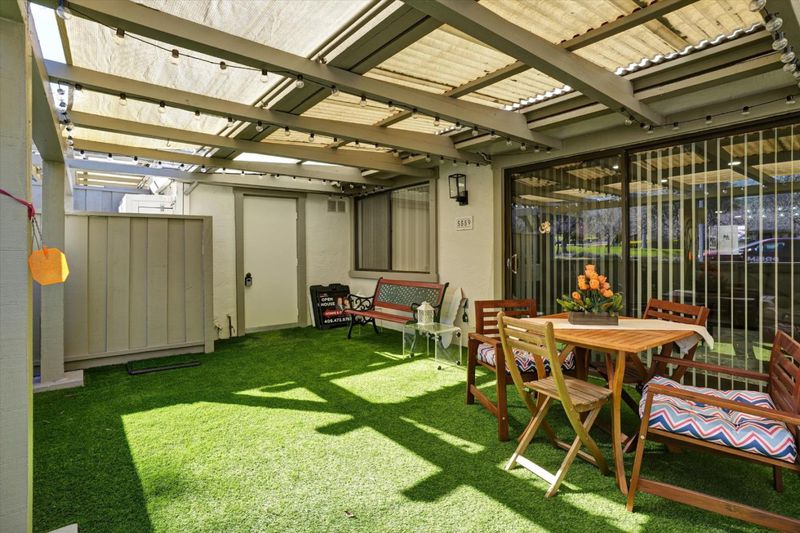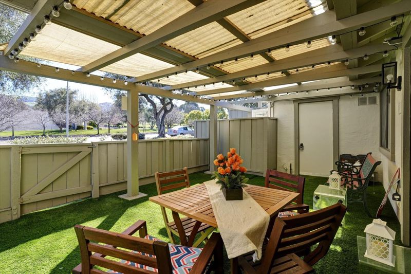 One level condo with no one above or below and easy access from Street. This 2 bedroom 2 bath has been remodeled and everything inside says easy living. This unit had an interior washer and dryer. remodeled kitchen, bathrooms and laminate floors through out. Location provides easy access to clubhouse, pickleball courts and Cribari Center. It also has a back sunny patio with artificial grass and storage. If that was not enough it has a huge storage area in the attic.