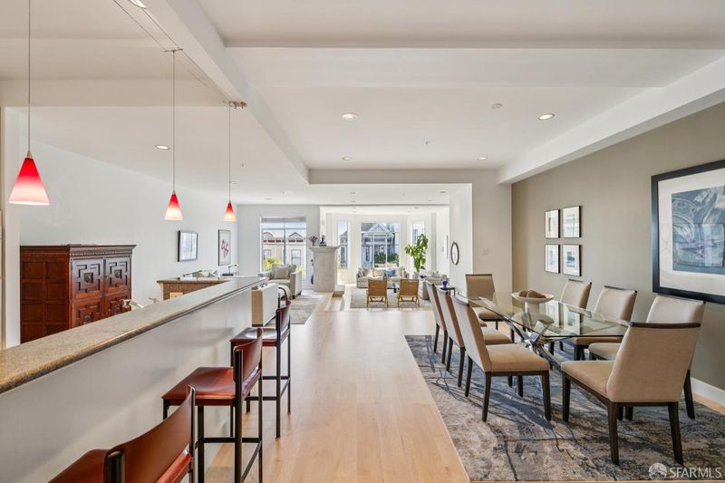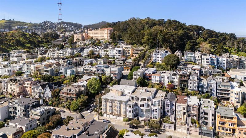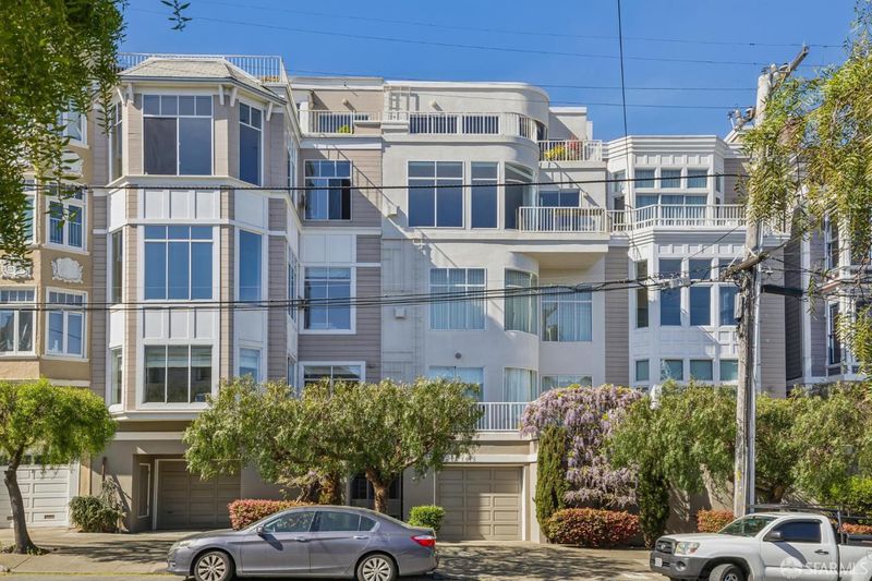 117 Divisadero Street, located on the quiet, uphill block of Divisadero Street, is a large-scale townhome condominium in the prestigious Buena Vista enclave. Spanning approximately 23 feet wide (per condo map), the home offers 2 bedrooms, 2.5 bathrooms, and 2,790 sq. ft. of living space (per graphic artist). Nestled into the hillside, the residence features dramatic east-facing windows that fill the home with natural light and highlight the impressive 11-foot ceilings. Ideal for entertaining, the main level showcases an expansive floor plate with a formal dining area for 10+ guests, a sunken living room, an adjacent bonus seating or office area, and a spacious kitchen. A powder room and large storage closet complete this level. The lower level features the generous primary suite, highlighted by a bay window with bench seating, a walk-in closet, and a spa-like marble bathroom with jetted soaking tub, walk-in shower, and dual vanity. The adjacent guest bedroom offers ample space for a large bed along with a bonus seating area or office nook. A guest bathroom and laundry room complete this level. Additional highlights include hardwood floors on the main level, new carpet on the bedroom level, one-car garage parking, and a common elevator servicing both levels of the home. Ideally located just blocks from Buena Vista Park and Duboce Park, the home offers exceptional proximity to outdoor space as well as the dining and shopping corridors along Castro Street, Haight Street, and Divisadero Street. Easy MUNI access. 93 Walk Score, 94 Transit Score. HOA dues $953/month. 9-unit condominium building. We have multiple square foot measurements - buyers to satisfy themselves with square foot measurements.