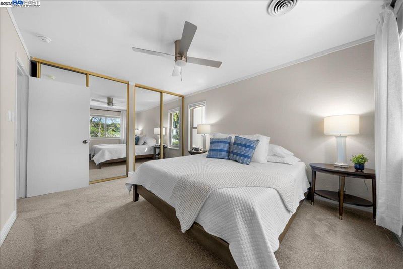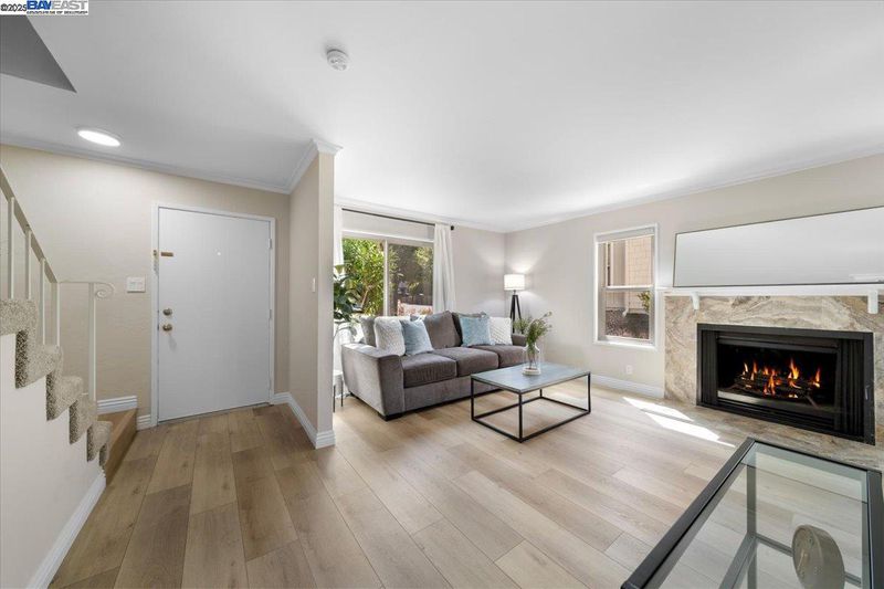 Tucked away in one of Moraga’s most desirable communities, this beautifully remodeled end-unit townhome lives like a private single-family residence. Inside, enjoy thoughtful upgrades throughout: luxury vinyl plank flooring, plush bedroom carpeting, designer lighting, and a reimagined kitchen with white shaker cabinets, stone counters, and premium stainless steel appliances. The open living and dining area, anchored by a cozy fireplace, flows seamlessly to a sunlit patio—perfect for coffee or dining al fresco. A chic half bath completes the main level. Upstairs, two spacious bedrooms offer sweeping views of rolling hills and treetops, views. The full bath offers dual vanities, and a laundry closet adds everyday ease. Extras include a newer HVAC, dual-pane windows, three storage units, and two covered parking spaces. HOA covers water, garbage, exterior and pool maintenance, plus earthquake insurance. Major roof and siding upgrades are already paid for, ensuring peace of mind and lasting value. Close to trails, Orinda BART, top-rated schools, St. Mary’s, and Moraga’s shops and dining—this home truly has it all.