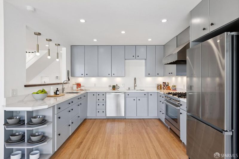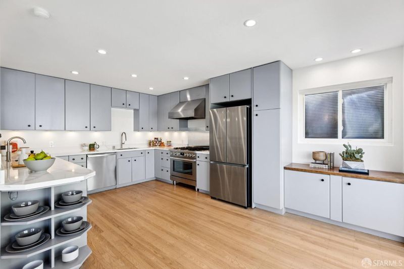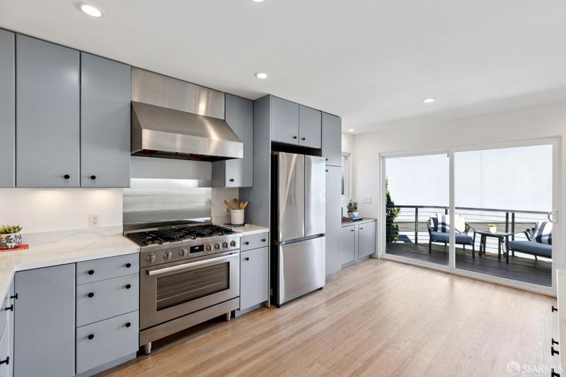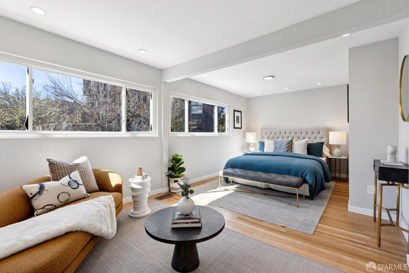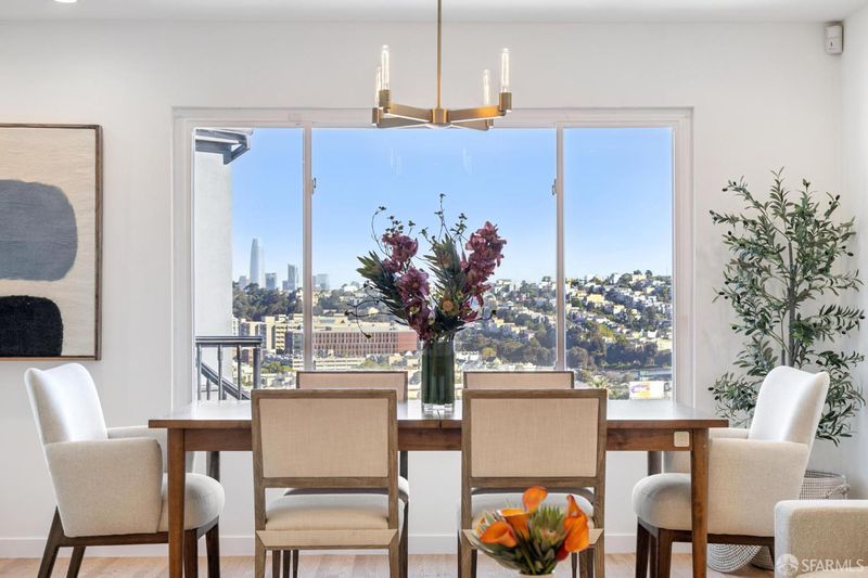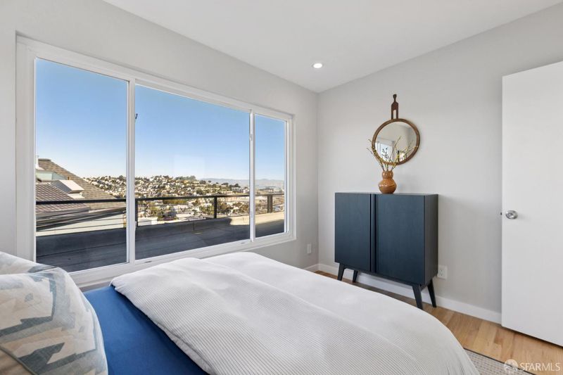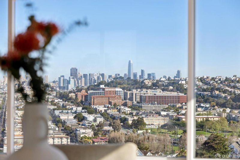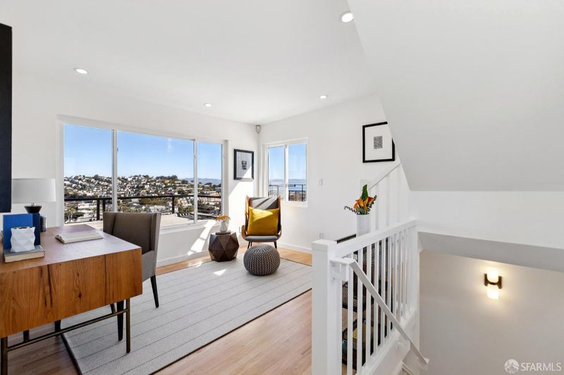 Welcome to 190 Rutledge in Bernal Heights! Some homes feature a view- but this one offers the entire suite of Bay Area landmarks- including the City skyline, Coit Tower, GG Brige & Mt. Tam, Twin Peaks & Sutro Tower, the East Bay & Mt. Diablo, even San Bruno Mountain and southerly outlooks. It's a true 360-degree panorama that is sure to wow! This gorgeous residence features three bedrooms, three baths, ~2,275 sq ft spread across four luxurious levels, three-car parking with a gated two-car pad, EV charger, and a one-car garage. And at the top, a penthouse entertainment room wrapped in all the sights. Newly refinished oak hardwoods run throughout and integrated in-ceiling speakers add to the already uplifting vibe. The main living level delivers an open kitchen, dining, and living entertainment-style floorplan. The updated kitchen centers around a new Bosch gas range and hood, Miele dishwasher, new Samsung refrigerator, new countertops, sleek cabinetry, and a breakfast bar that keeps the kitchen connected to the living space. A sliding glass door leads to a view deck off the kitchen/dining area, and a spiral staircase connects the deck to the manicured garden and slate patio below. Also located on the main floor, the primary suite features a wall of built-in closets with organizers and a travertine en-suite bath with dual vanity and shower over tub. Ascending to the next level, the home adds a second bedroom, a separate office or den, with panoramic views from both, and a full bath with floating vanity and stall shower. At the top of the home is where the entire experience crescendos- the pent-level entertainment room, which boasts huge picture windows letting in views of the entire City and surroundings. It's truly an epic feature and goes to show how special this lot is. And not to be forgotten, the entry level offers a self-contained world of its own, offering a bedroom suite and adjacent dining area/kitchenette. The kitchenette features a Miele oven, dishwasher, Artevino wine refrigerator with approximately 200-bottle capacity, and Samsung refrigerator. A full bath with floating vanity and stall shower, and direct access to the garden round out the package. Other features include solar panels and intercom. Steps from Precita Park, Cortland Avenue, Bernal Hill Park, easy commuting down the 101, or to SFO. This is a special one not to be missed!