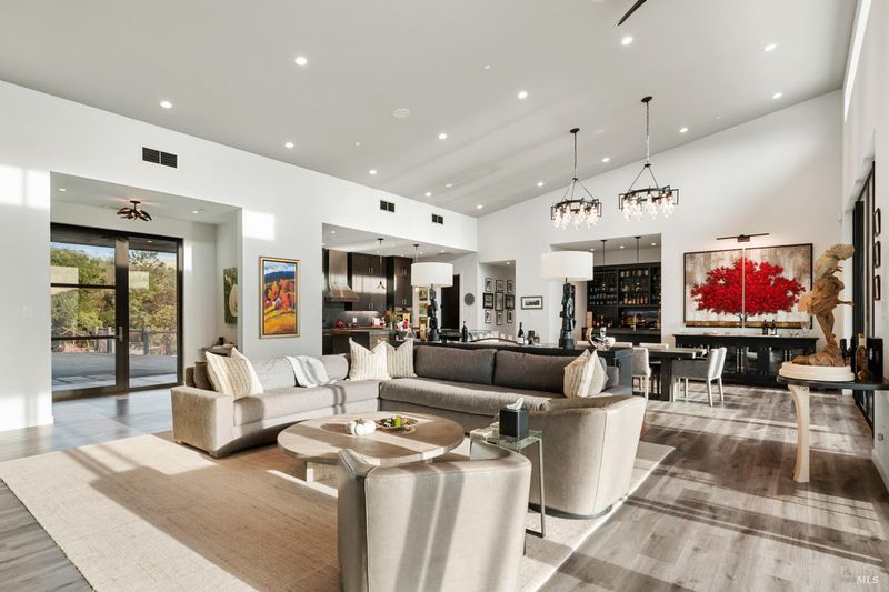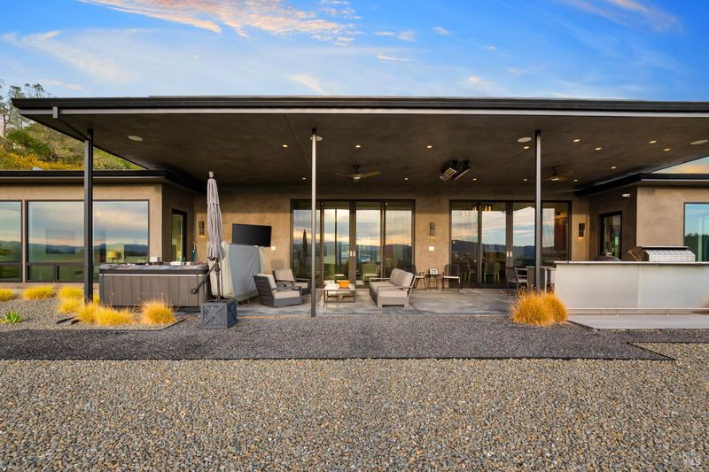 Very private estate property with spectacular views and a brand new (circa) 2022 3,658 sf contemporary home designed and furnished with Restoration Hardware. Design includes 1,500 sf of covered patio with outdoor kitchen and spa for indoor/outdoor living, entertaining. Floor plan features beautiful Master Suite and two connected ensuite guest bedrooms with shared kitchen. The property includes a lake for recreation and irrigation of the 21-acre premuim vineyard. Offering price includes Restoration Hardware furniture. Farm equipment offered separately. This is the ultimate primary home or second home wine-country getaway with amazing privacy, truly magnificent views and...with all furniture inclusive it is move-in ready.