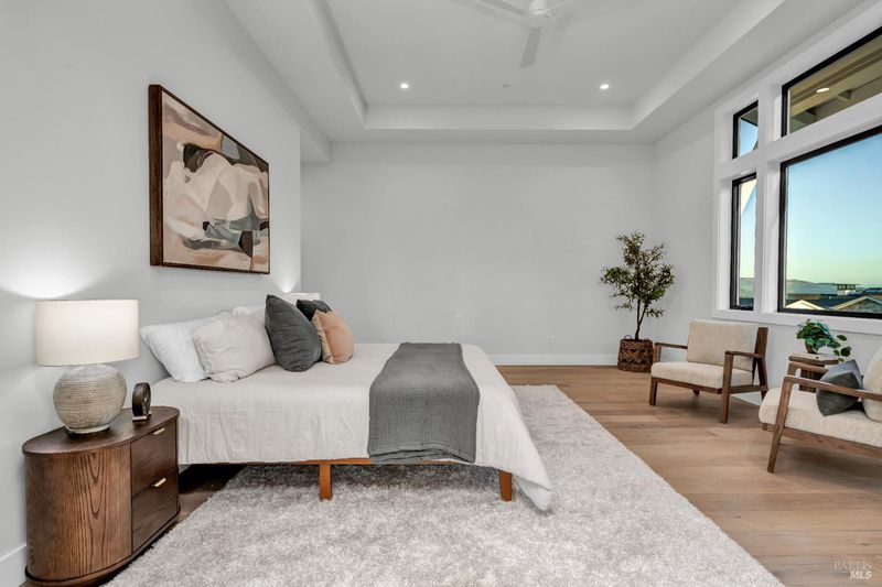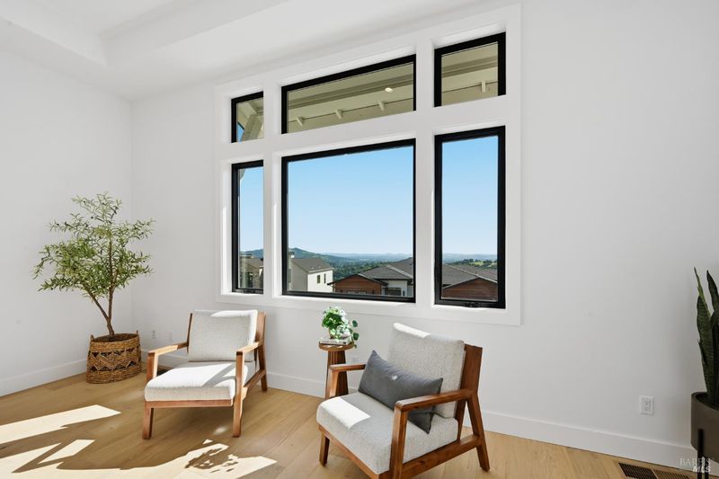 Perched in the coveted Fountaingrove Hills, this stunning 2025 custom-built home captures sweeping valley and sunset views that truly steal the show. Designed for easy living, the main level features the home's primary living spaces with convenient access from the three-car garage and front entry. The spacious three-car garage offers room for vehicles and even a golf cart that's perfect for cruising right over to the Fountaingrove Golf Club clubhouse. Inside, four spacious bedrooms, three full bathrooms, and an indoor laundry room provide comfort and functionality. The chef's kitchen is a standout, highlighted by an oversized island, dual-fuel range with a gas cooktop and electric double ovens, and a picturesque sink overlooking a private patio. A dramatic floor-to-ceiling stone fireplace anchors the family room, while expansive sliders frame the breathtaking scenery and fill the home with natural light. The primary suite provides a peaceful retreat with serene views and a custom onsite-built walk-in closet. The spa-inspired primary bath features heated floors and a towel warmer for year-round comfort. Outside, a raised seating nook creates the perfect spot to enjoy a glass of wine and gather with friends as the sun sets. Thoughtfully designed with exceptional attention to detail, this home blends refined luxury with the best of Sonoma County living.