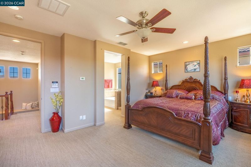 This Exquisite Home features Breathtaking Panoramic Views on one of the finest lots in all of Diablo Grande. This home has 4 bedrooms, 3.5 bathrooms, a spacious loft retreat, formal living and dining area, family room with fireplace and 2,954 sqft. of living space. The gourmet kitchen has cherry-stained cabinets, granite counter tops, custom backsplash, stainless steel appliances, etched glass pantry door, plus sit-in breakfast bar. The primary suite features a spacious bathroom with dual sink vanity with cherry-stained cabinets, large walk-in closet and jacuzzi tub. Other features include solid oak hardwood floors on the main level, downstairs mini suite, premium carpet, Hunter Douglas blinds, wrought iron staircase with cherry railings, custom built refrigerated wine bar in the family room, extra recessed lighting throughout, and surround sound speaker system. The outdoor living space features a 12x30 custom view deck with recessed lighting and retractable awning allowing for taking in the natural beauty of nature’s endless hillscapes, custom landscaping, mature trees, putting green, arbor with ceiling fan, outdoor stainless steel barbeque island with granite countertop, stainless-steel sink and refrigerator. This Home has it All!