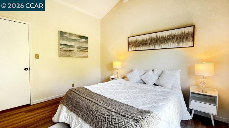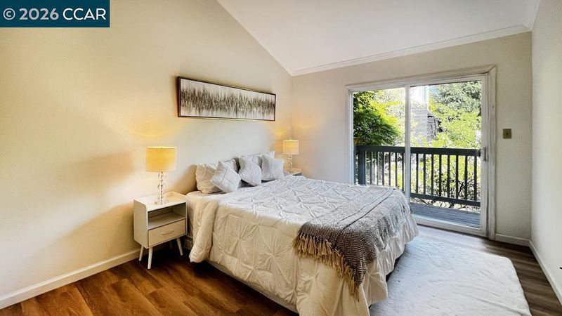 Welcome to 22 Holcomb Court! This townhome-style condo is nestled in the heart of Walnut Creek and includes a rare, spacious two-car garage.This impressive condominium features a bright open-concept living area with soaring ceilings that allow for abundant natural light, an updated kitchen, and convenient in-unit laundry. The downstairs bedroom provides direct access to a full bathroom and also opens to a private patio looking out to mature fruit trees and lush greenery - creating a peaceful outdoor retreat. Upstairs features new luxury vinyl plank flooring, a versatile loft-space ideal for a home office, reading nook, or flex area, a private deck surrounded by mature trees...perfect for morning coffee, and a private bathroom. The spacious two-car garage is located directly below the unit, offering convenient and easy access.This centrally located home is Ideally situated just steps from the Iron Horse Trail and the open-air Broadway Plaza - home to more than 80 retail and specialty shops, Whole Foods Market, BART, and convenient access to highways 680 and 2