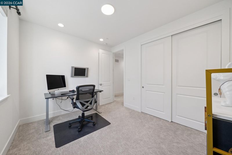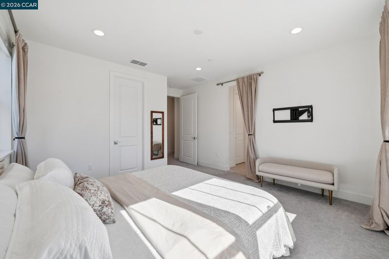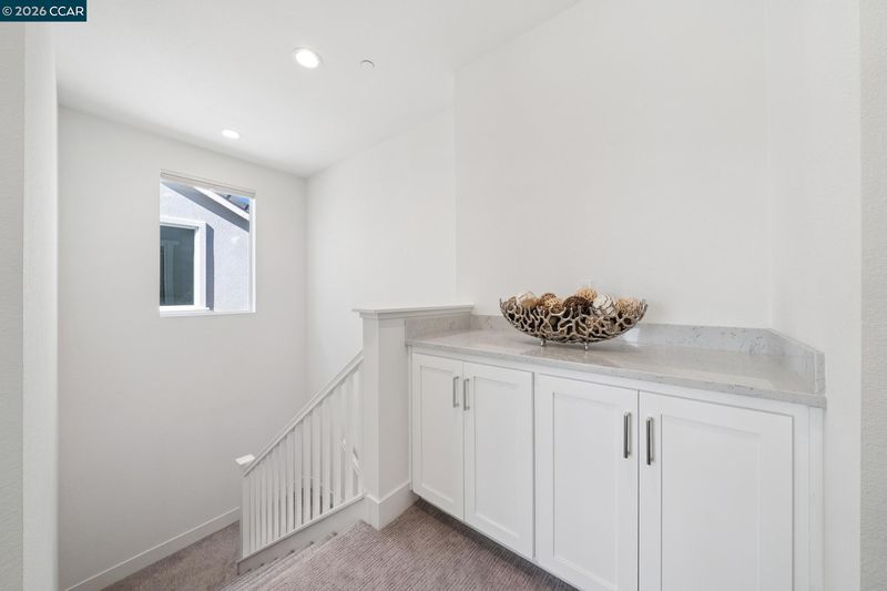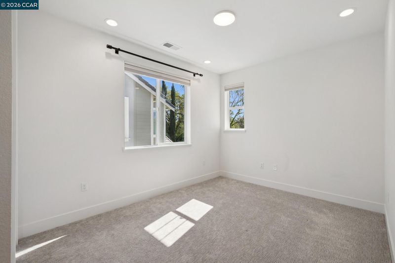 Fabulous two-year-new home in exclusive private community of just 15 homes, located at the end of a quiet, private street. Light and bright with open floor plan featuring gourmet kitchen with quartz slab countertops, soft closing doors and drawers, and oversized center island, adjoining large dining area and living room, opening to spacious back yard for entertainment and relaxation. One bedroom and a full bathroom complete the main level. The second level showcases the primary bedroom suite with two walk-in closets, and luxurious bathroom with quartz finishes, double sinks, soft closing cabinets, relaxing bathtub, and oversized shower. Also featured are two additional bedrooms, an elegant hall bathroom, and conveniently located laundry room. Other highlights include owned solar electric, tankless water heater, two-way custom blinds and recessed lighting throughout!